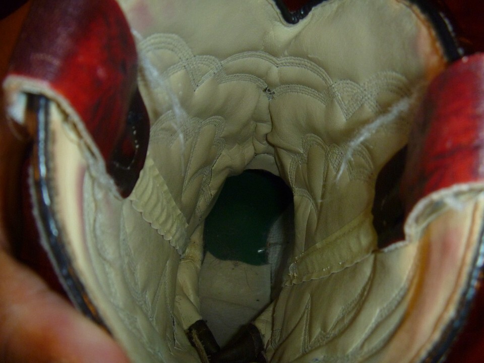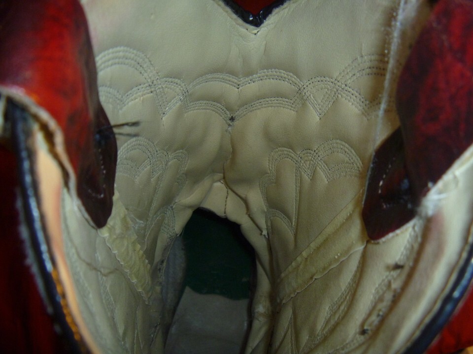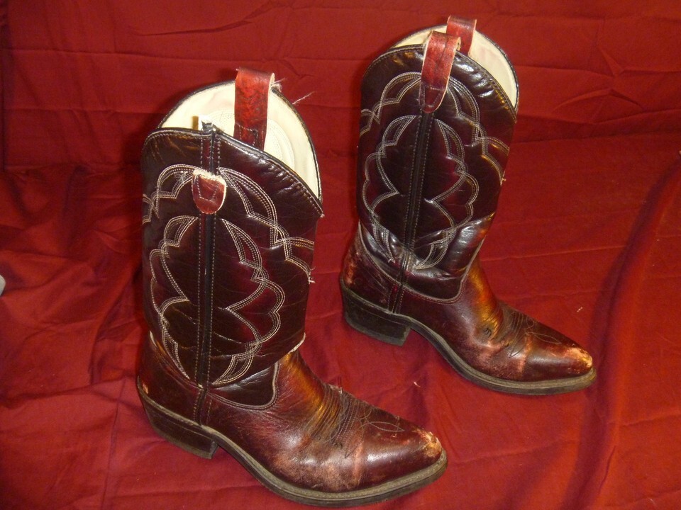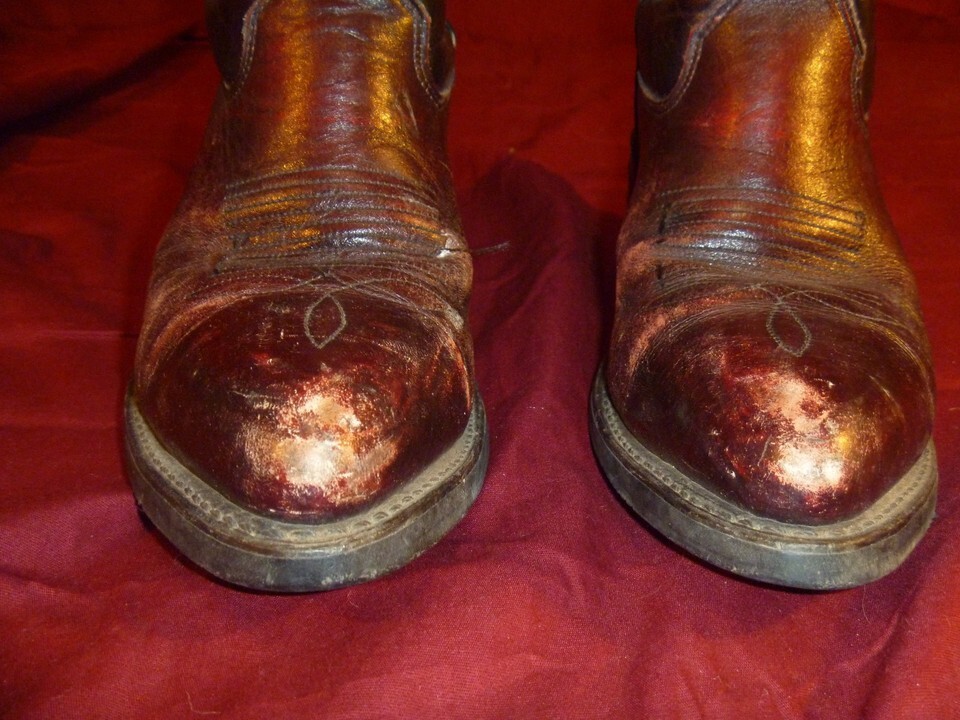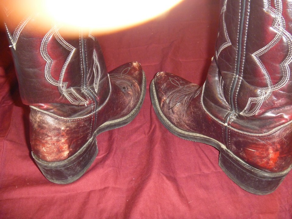 Straight from the Ranch : these boots were used to Primarily break in Horses on a Ranch in Wyoming: cant read the tag anymore too good: I just know where they came from . Lots of wear but plenty of life left in them.