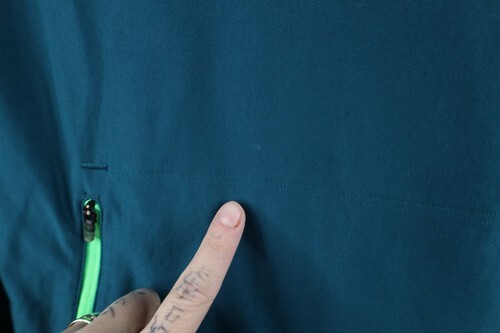 Stains throughout, and cuffs. Fabric pulls. Hood, cuffs discolored. Color faded. Logo faded left arm