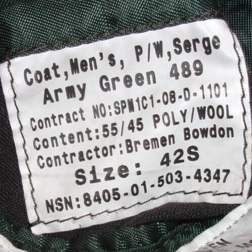 DSCP BREMEN-BOWDON DURABLE MENS P/W,SERGE ARMY GREEN 489 COAT