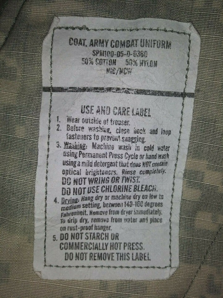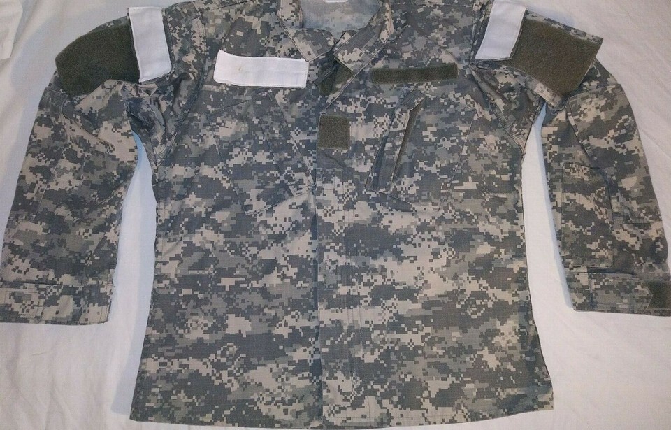 THIS UNIFORM JACKET IS WORN IN THE US ARMY SPECIAL FORCES SELECTION COURSE, EACH STUDENT HAS TO WEAR THERE ROSTER NUMBER ON THE WHITE TAPE. THE LOCATION IS A REGULATORY WHITE TAPE ON THE RIGHT HAND SIDE OF THE CHEST WITH THE SOLDIERS ROSTER NUMBER ON IT. BOTH ARMS MUST DISPLAY THE REGULATION WHITE TAPE WITH THE SPECIAL FORCES STUDENT ROSTER NUMBER ON IT. ALL UNIFORM TOPS MUST HAVE THE WHITE TAPE ON THE UNIFORM SEWN ON BY A CERTIFIED FABRIC REPAIR SPECIALIST TEAM MEMBER. THIS UNIFORM WAS SEWN ON BY THE MOBILE SATTELITE TEAM 143RD FR COMPANY THAT DOES THE UNIFORMS FOR ALL SPECIAL FORCES STUDENTS. I HAVE ALL SIZES WITH THE REGULATION WHITE TAPE. THIS UNIFORM WAS USED IN THE SELECTION COURSE 2012.