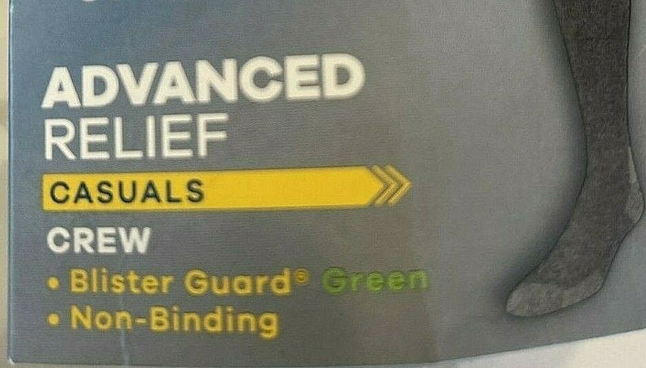 Dr Scholls 2 PAIR Mens 7-12 Advanced Relief Casuals Crew Blue GRAY BLISTER GUARD
