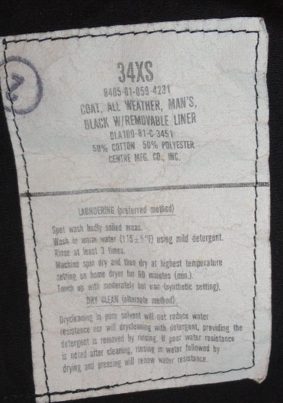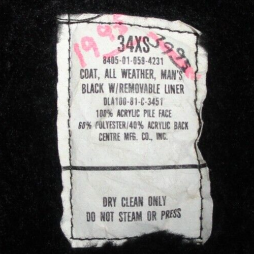 Military Regulation Uniform Black Trench Over-Coat All Weather ASU 34XS