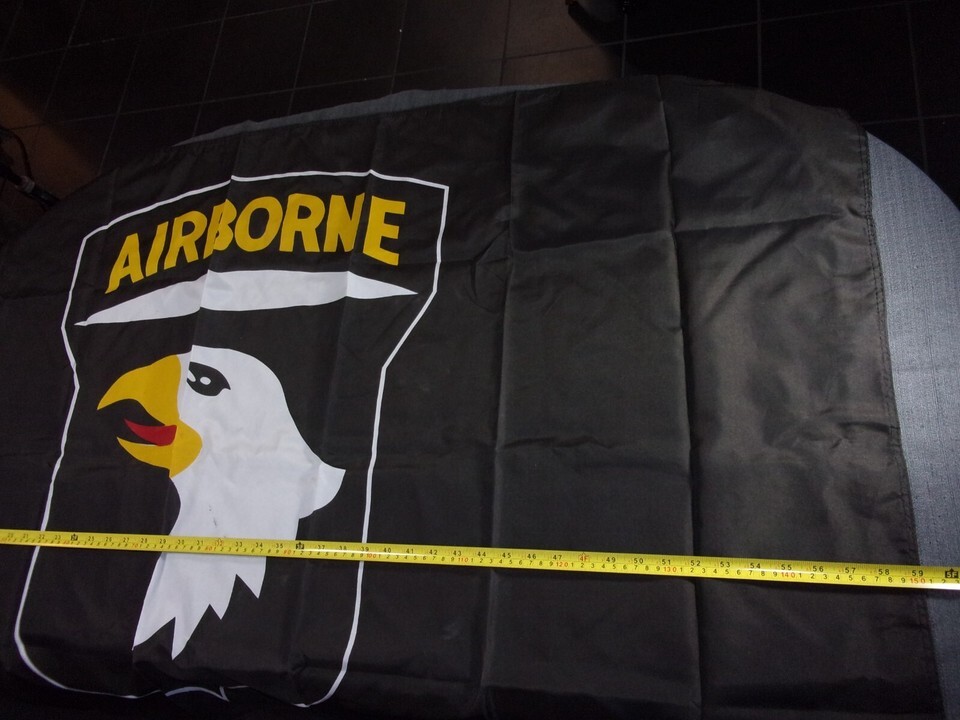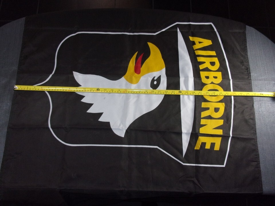 ITEM: NEW 101ST AIRBORNE "SCREAMING EAGLES" BLACK LARGE BANNER FLAG DISPLAY 34.5"X59"