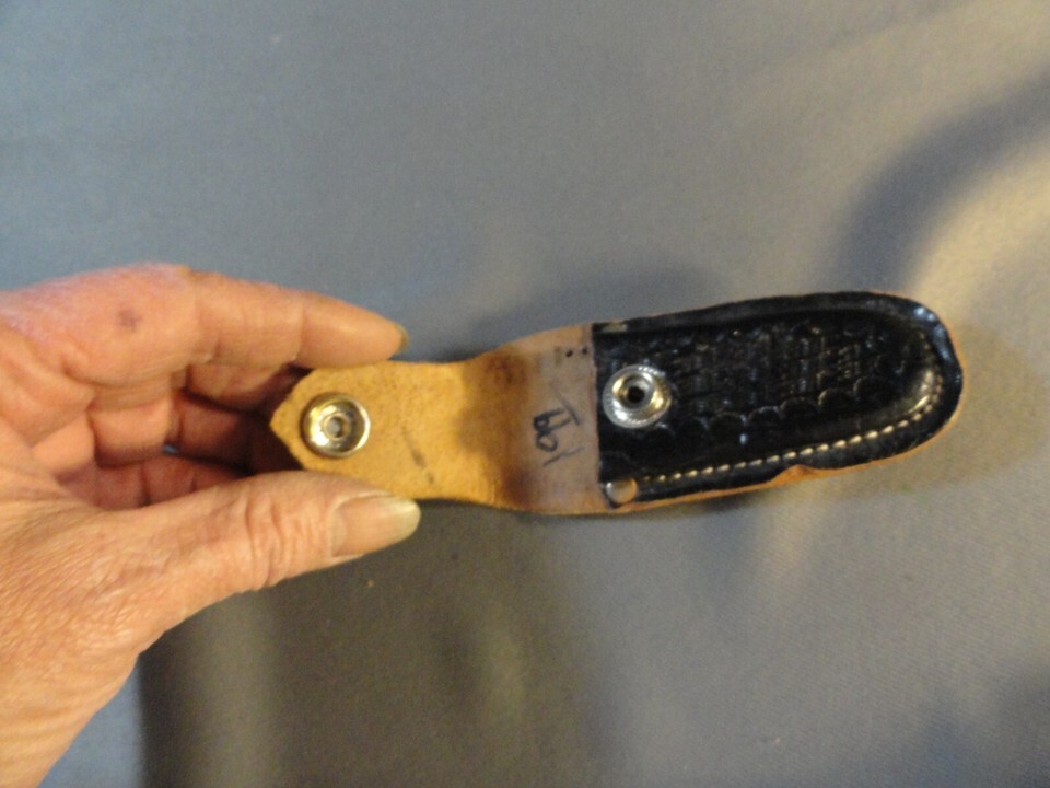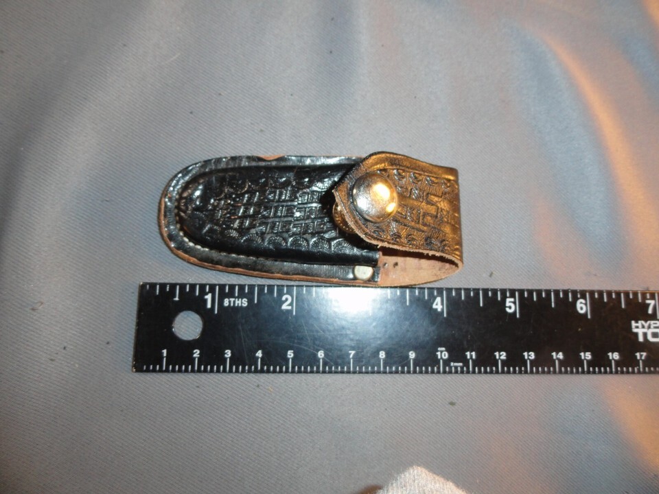 BOY SCOUTS HAND CRAFTED BLACK LEATHER STAMPED KNIFE CASE W/ BELT LOOP MADE IN US