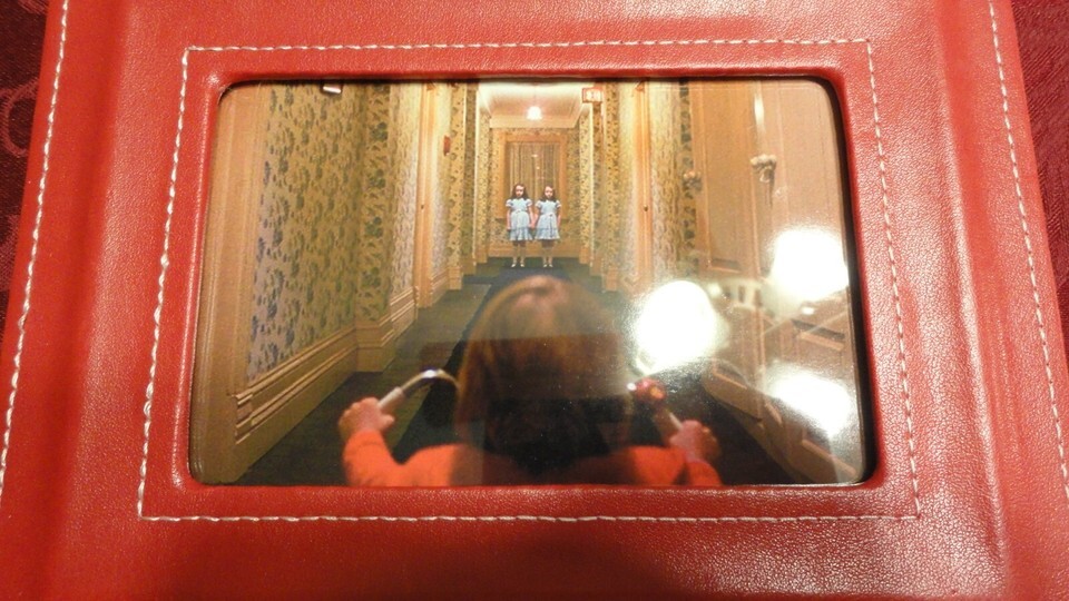 THE SHINING DANNY SEES THE TWINS IN HALL MOVIE SCENE IN VINTAGE RED FRAME 9X7