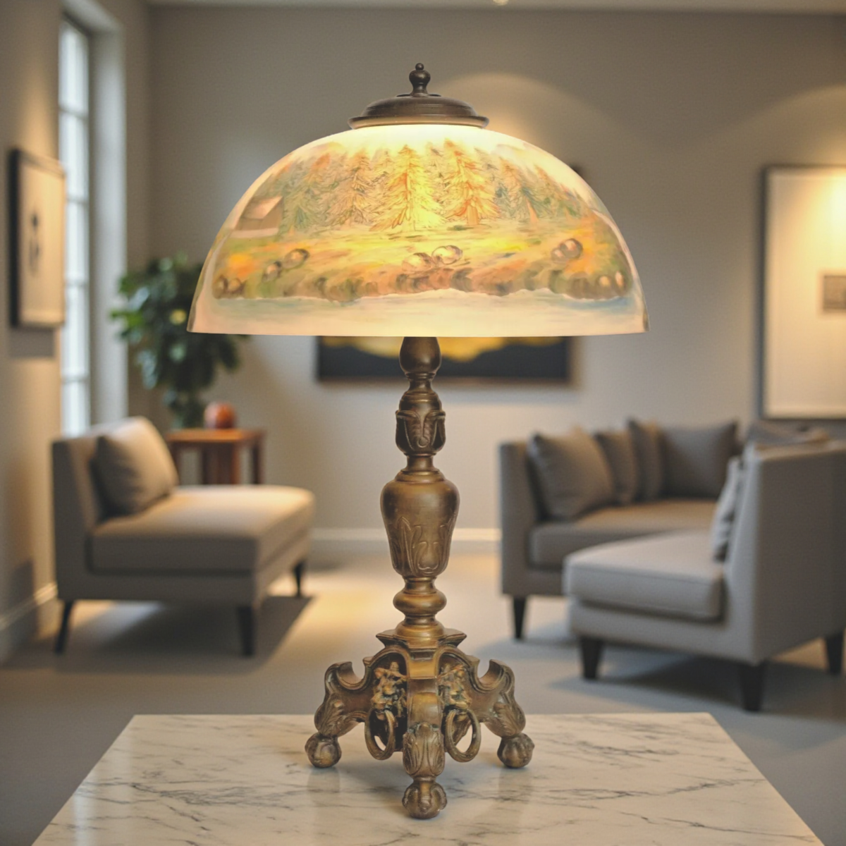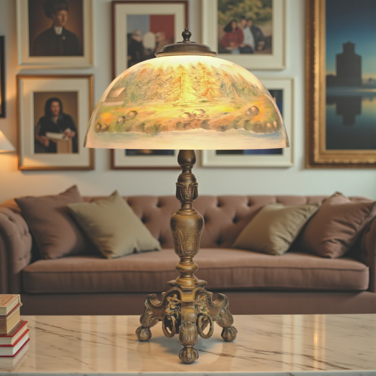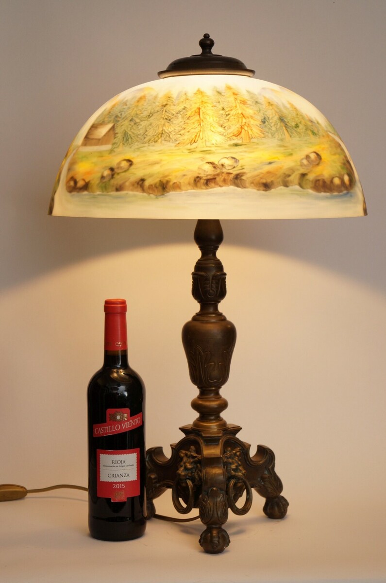 Art Nouveau Lumière de Maison Campagne Lampe Table " Bavaria " Bronze Pièce