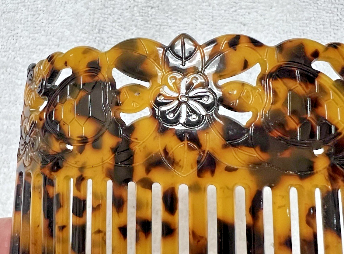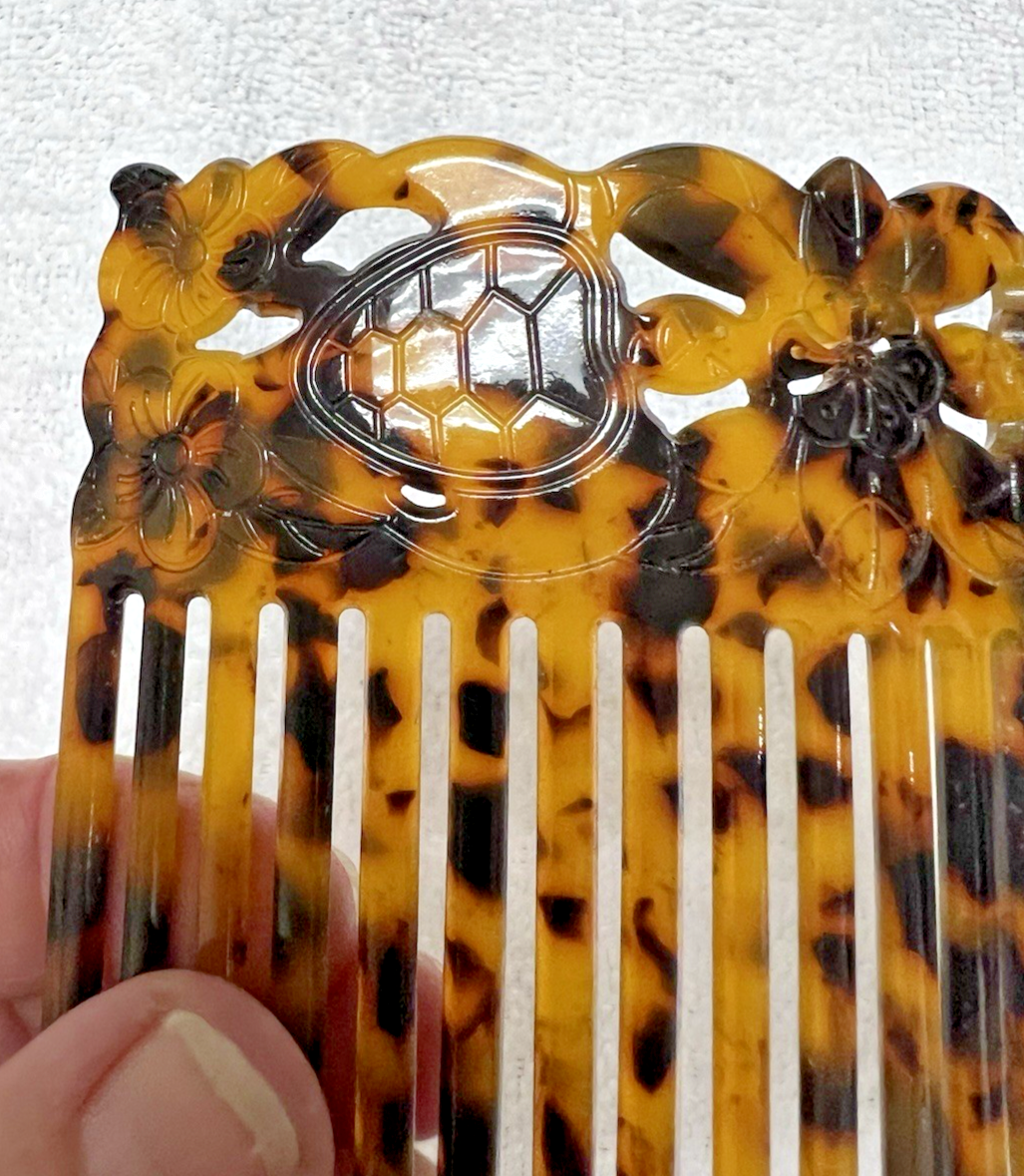 Large Older Hair Comb Faux Tortoise w Floral and 46 similar items