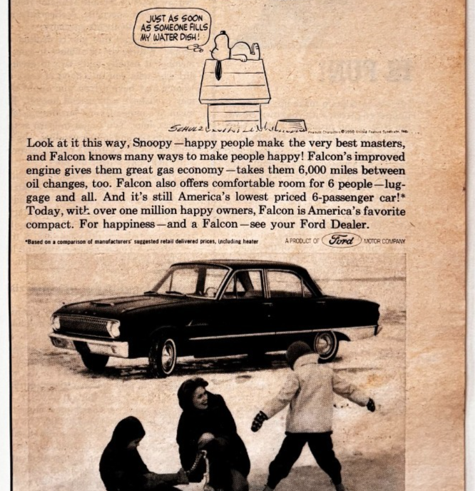 1962 Ford Falcon Advertisement Snoopy Peanuts Cartoon Automobilia DWXX6