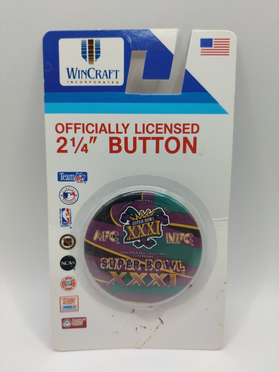 Vtg 1997 Wincraft Superbowl XXXI New Orleans Button Pin Football NFL NOS
