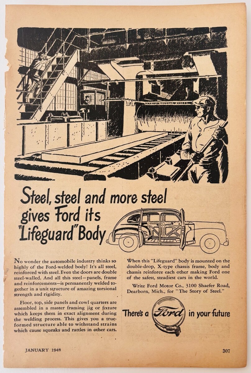 1948 Ford Motor Company Advertisement Automobilia Lifeguard Body Safety F15U1