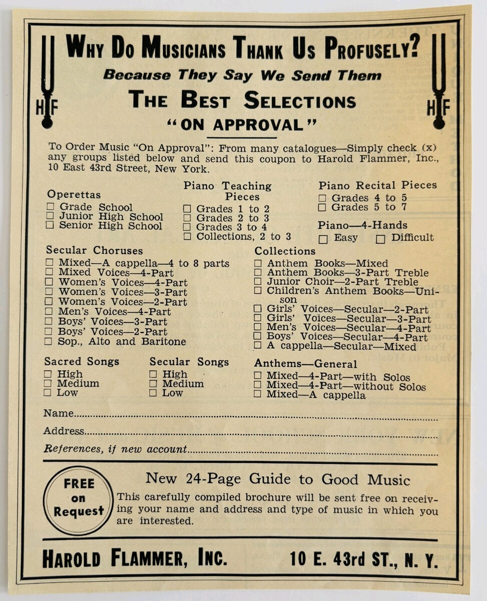 1936 Harold Flammer Music Supply Store Advertisement New York City Retail E17C