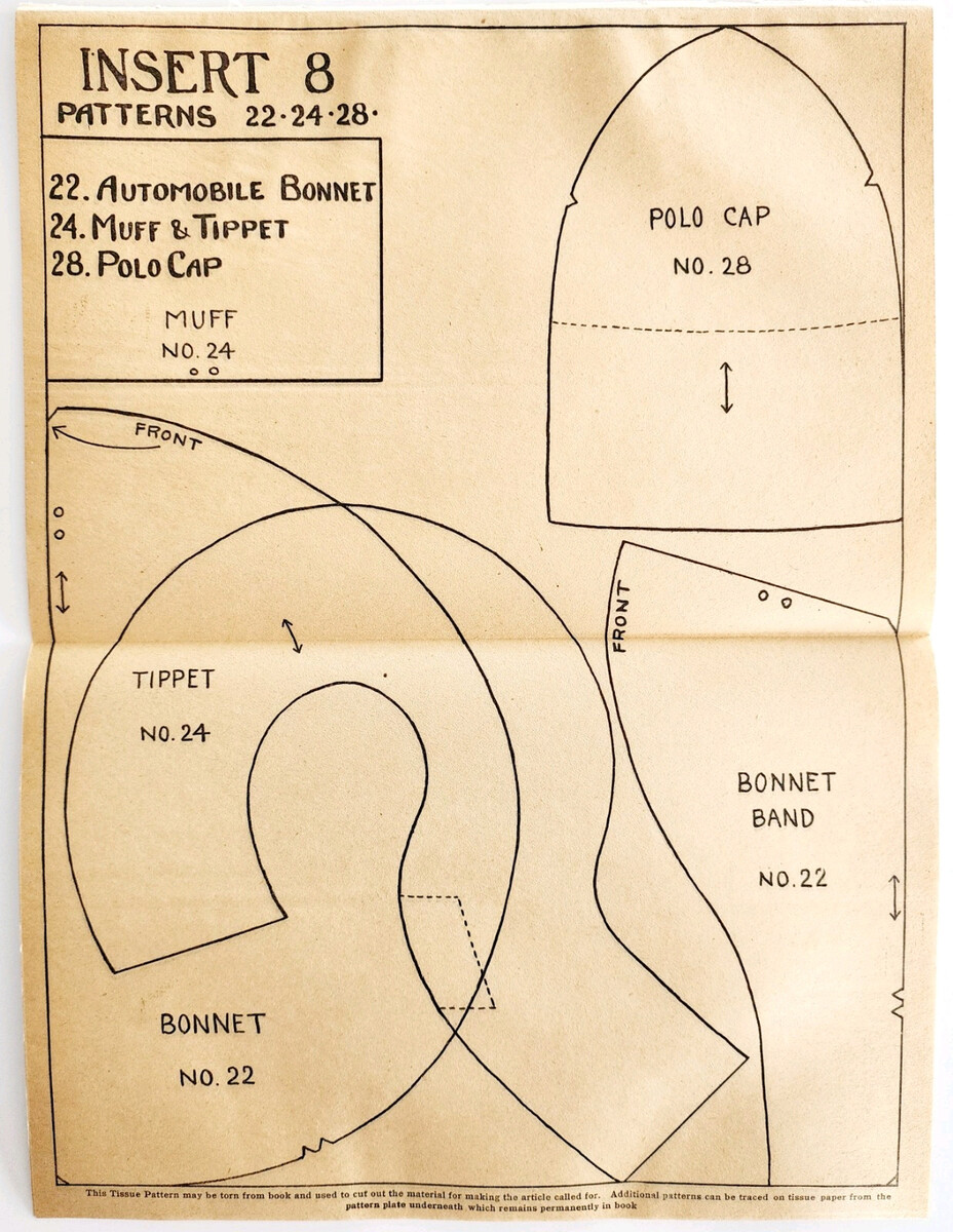 1913 Mary Frances Sewing Pattern Doll Auto Bonnet Muff Tippet Polo Cap DWSS11
