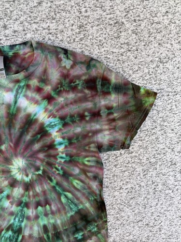 NEW Gildan Mens Bright Green Purple Spiral Ice Tie Dye Short Sleeve Shirt Medium