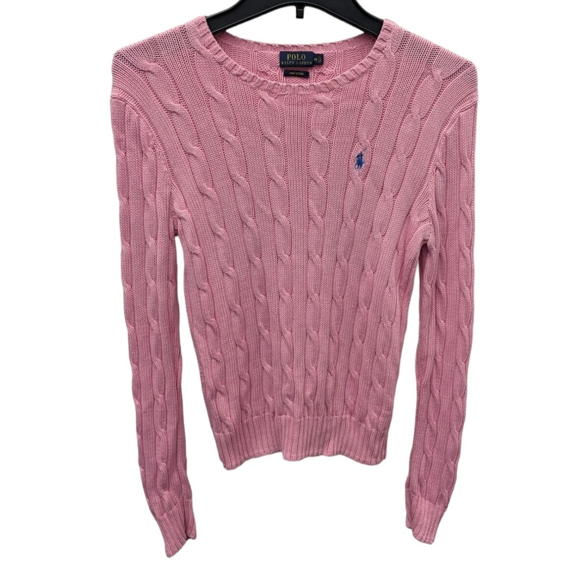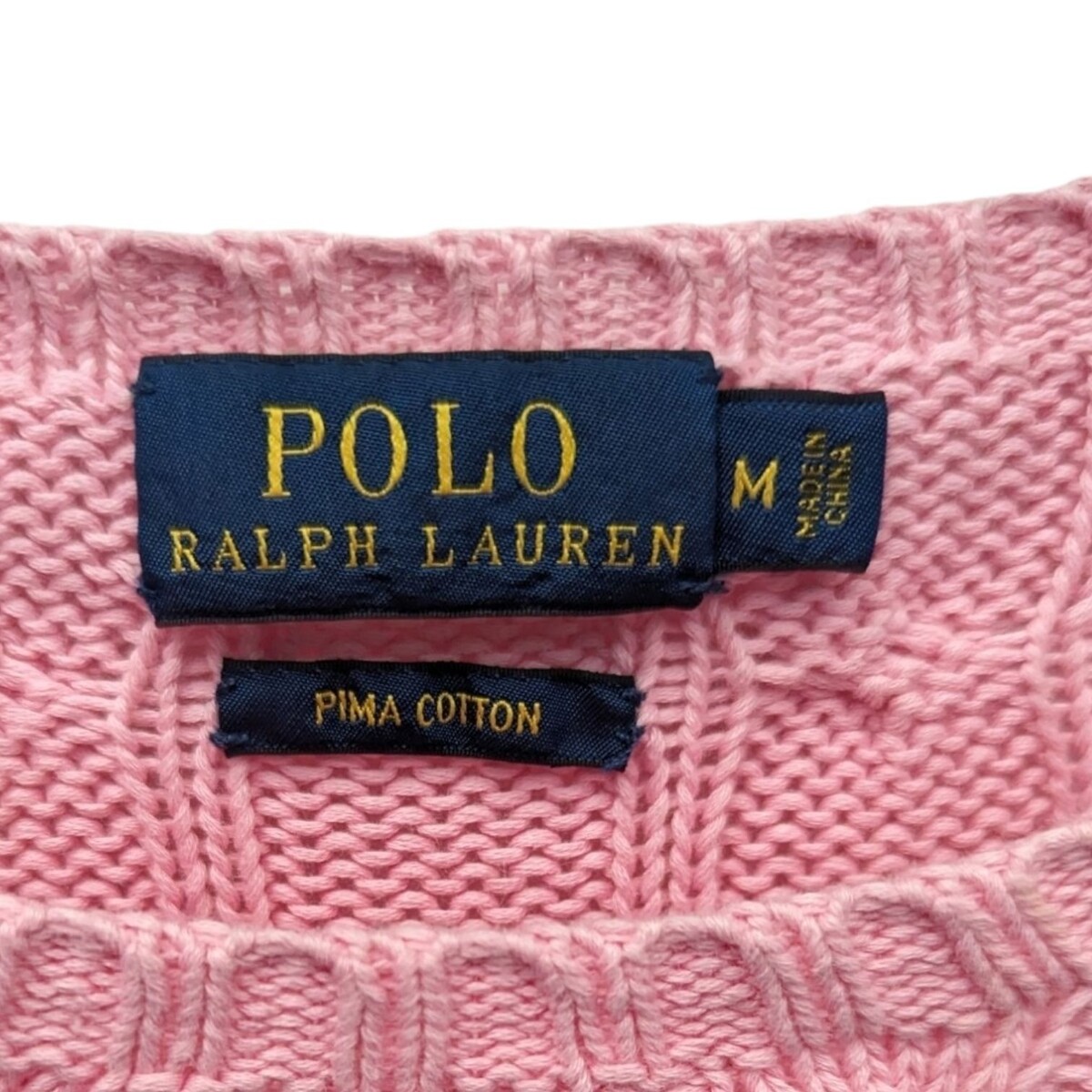 Vintage Polo Ralph Lauren Pink Pima Cotton Crewneck Cable Knit Sweater Medium M