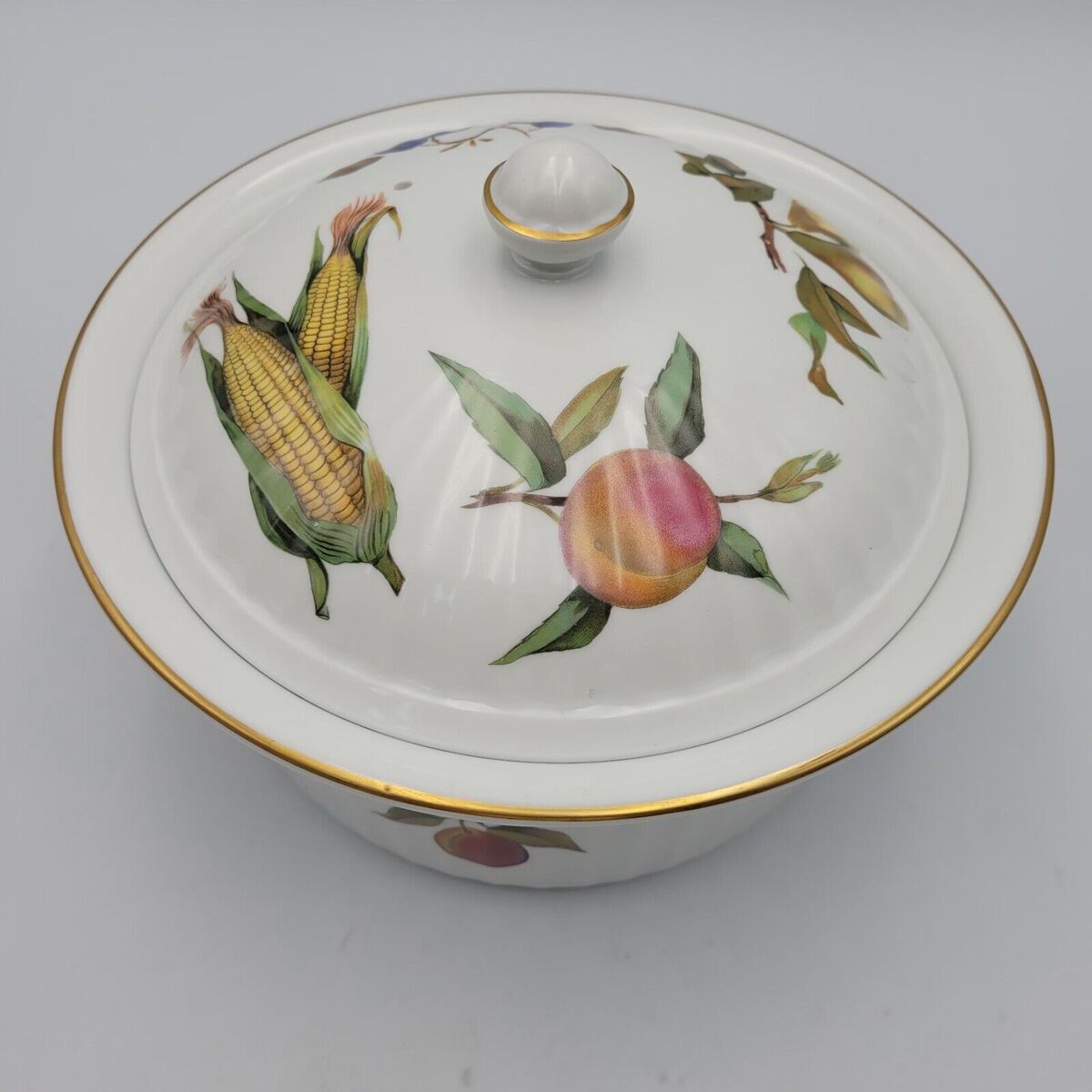 Royal Worcester Lidded Round Casserole 3 Quart Evesham w/Gold 1961 England