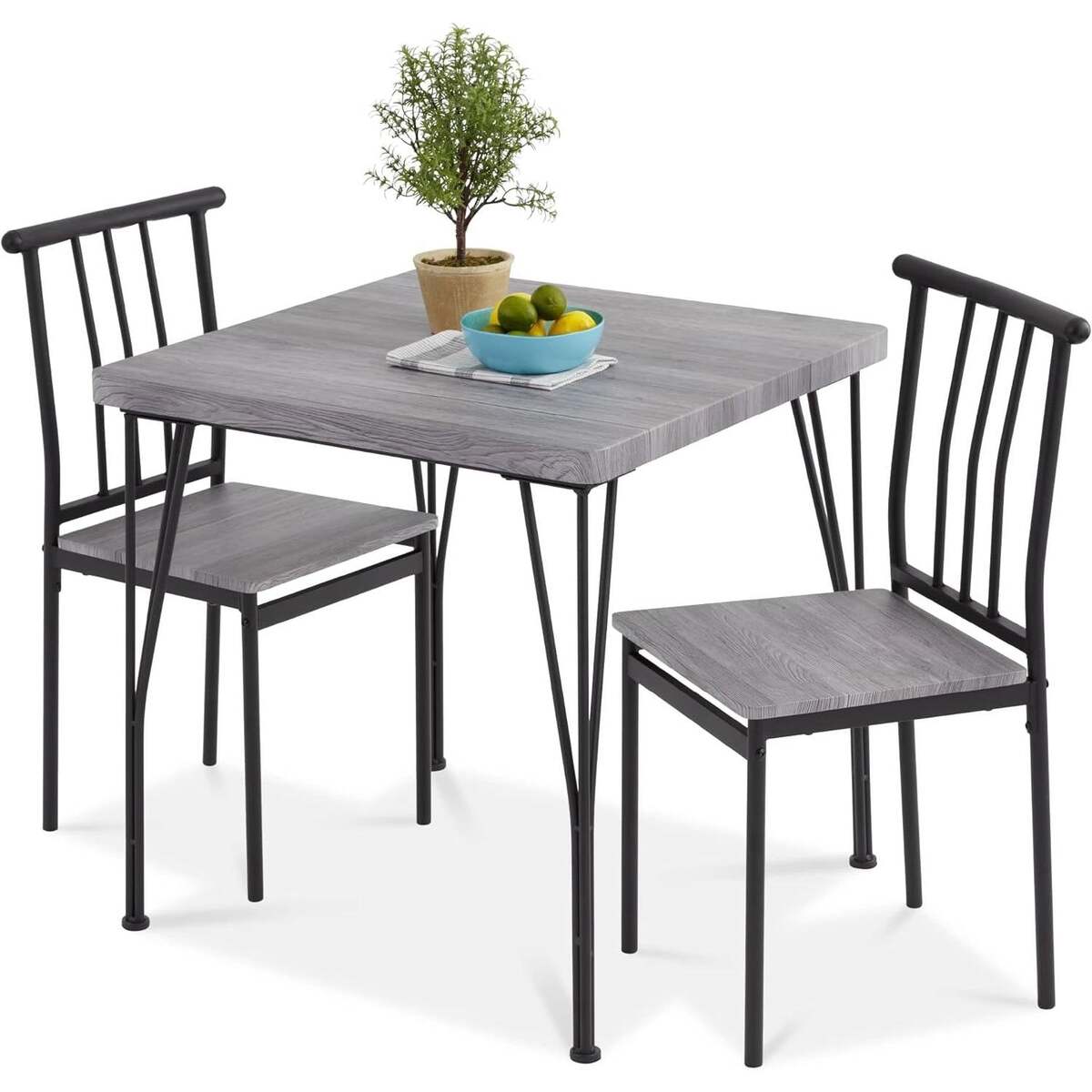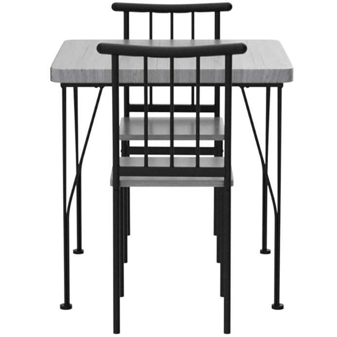 Modern 3-Piece Metal Frame Dining Set with Grey Wood Top, Two Chairs, 286 Lbs