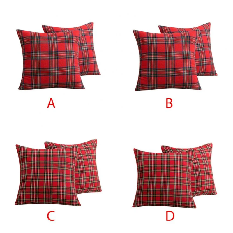 2 Pack Christmas Plaid Decorative Throw Pillow Covers Scottish Tartan Cushion Ca