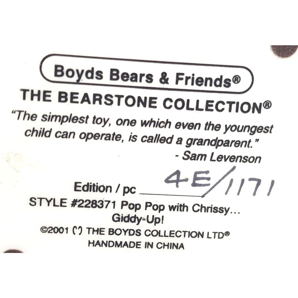 Boyds Bears Friends Pop Pop with Chrissy Giddy-Up Bearstone Collection 228371. VINTAGE 2001. EXCELLENT CONDITION