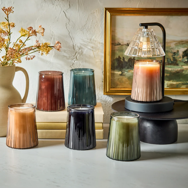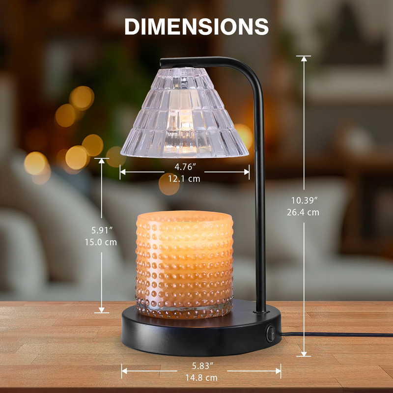 Glass Shade Design: Stylish glass shade softly diffuses light while focusing heat directly on the candle.