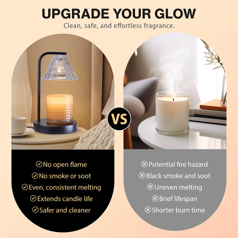 Safe Flameless Use: Gently warms candles with a 50W GU10 halogen bulb, eliminating open flames.