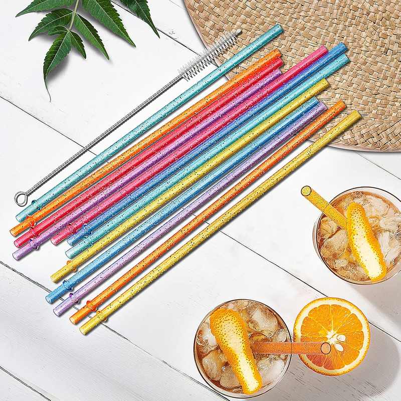12-Pack Glitter Reusable Colorful Plastic Straws, 11 Inches Clear Bpa-Free Unbre