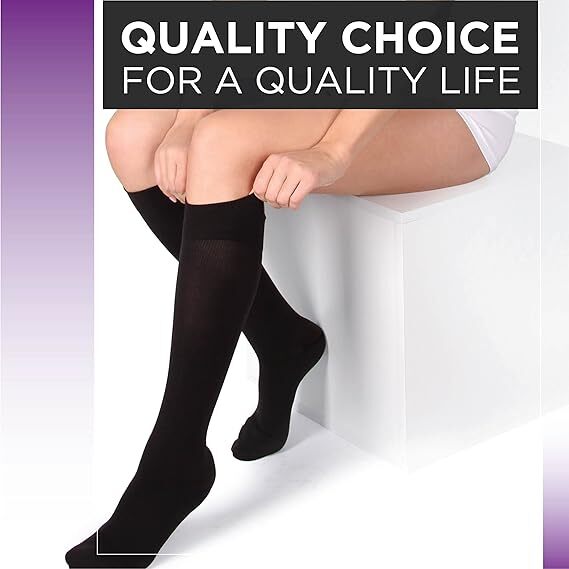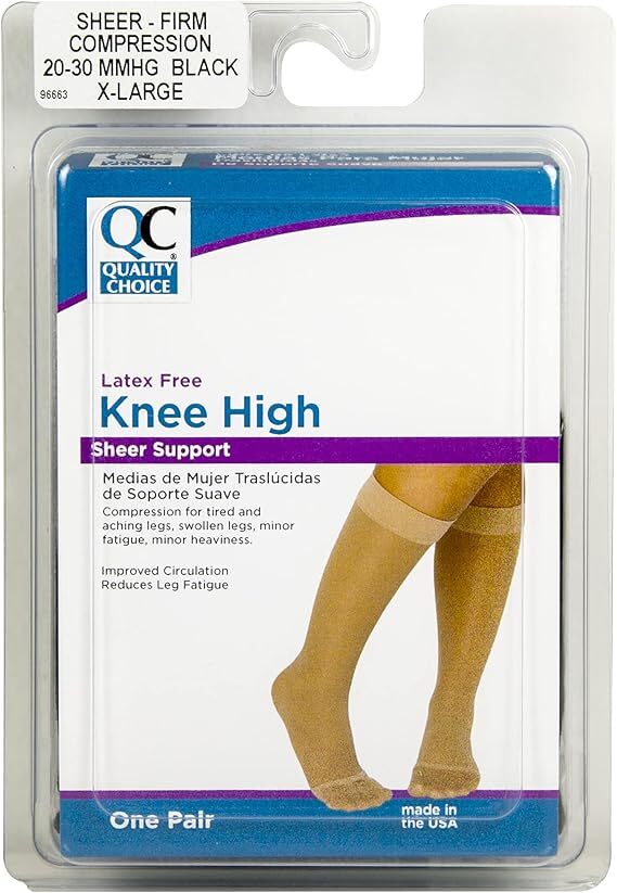 Quality Choice, Sheer Knee High Stockings, (20-30mmHg) Black, X-Large