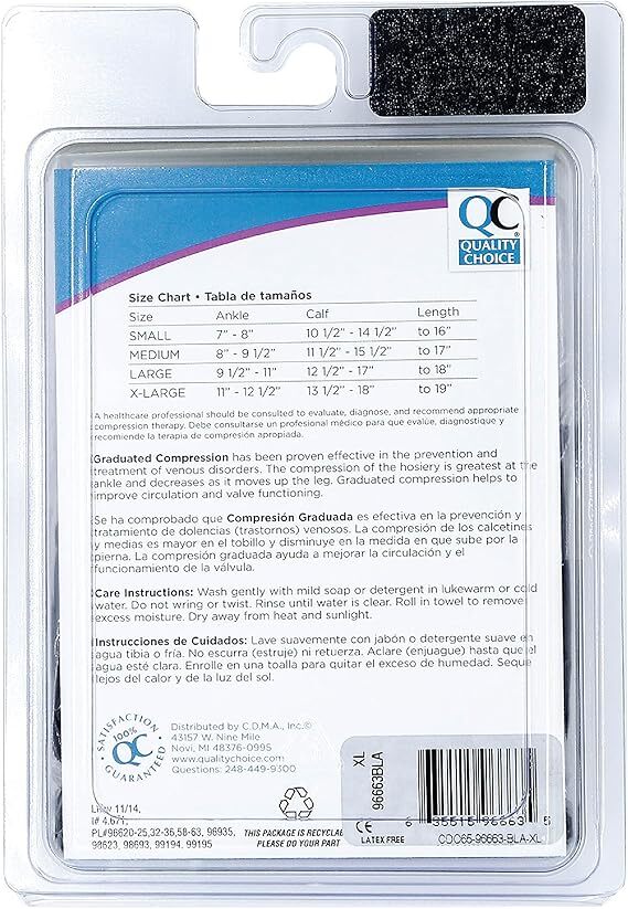 Title : Quality Choice, Sheer Knee High Stockings, (20-30mmHg) Black, X-Large