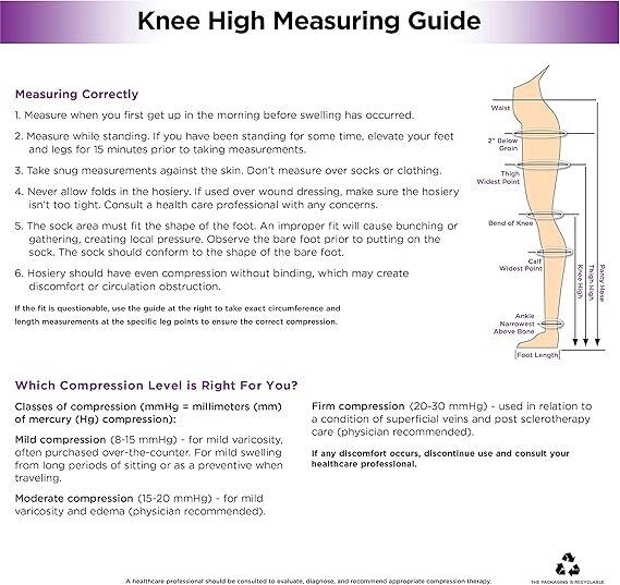 Therapeutic features? Graduated compression: The compression is greatest at the ankle and gradually decreases up the leg toward the knee.? Firm support: Provides a firm 20-30mmHg level of compression.? Improves circulation: Designed to help with blood flow in the legs and can help prevent back-flow and stagnation of blood in the lower legs.? Reduces swelling: The compression can help reduce and prevent swelling in the feet, ankles, and legs.? Aids various conditions: The therapeutic support helps relieve leg fatigue and symptoms associated with conditions such as varicose veins, spider veins, moderate edema, and swelling.