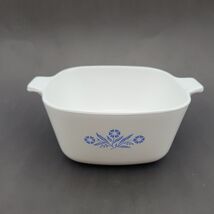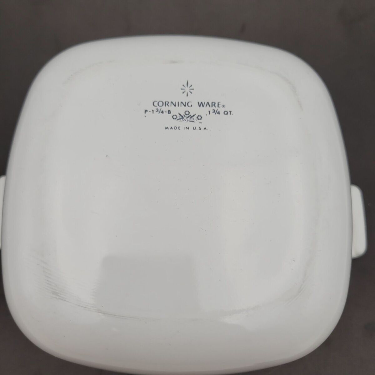 This vintage Corning Ware P-1 casserole dish is a classic addition to any kitchen. The blue cornflower pattern adds a touch of whimsy to your dining table. With a capacity of 1 3/4 quarts, this square dish is perfect for serving up your favorite dishes.