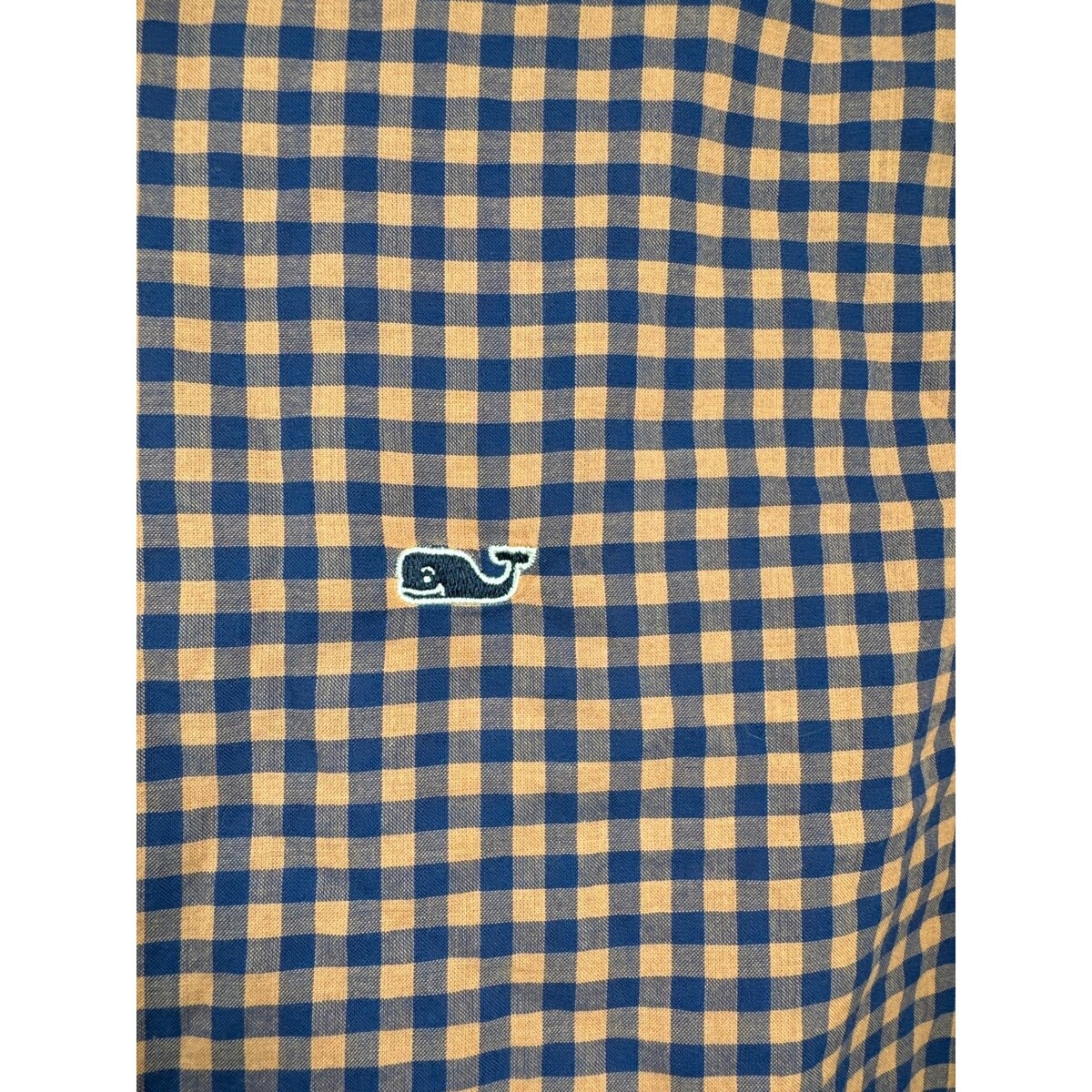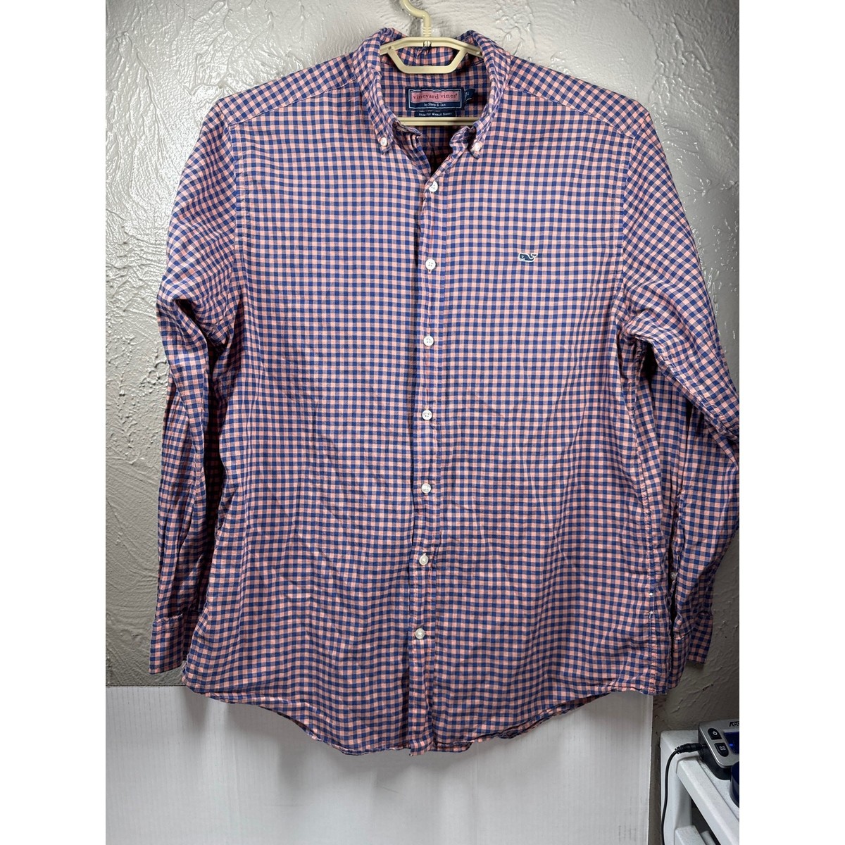 Vineyard Vines Slim Fit Whale Shirt Mens Button Down Plaid Blue Pink Size LargeThis item has been cleaned pers used clothing policy.