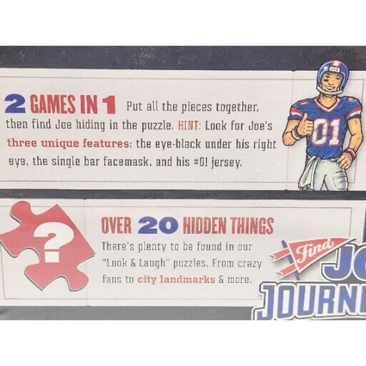 Show your love for the Dallas Cowboys with this 500-piece search puzzle featuring Joe Journeyman. Made by YouTheFan, this puzzle is perfect for football fans of all ages. The puzzle measures 18" x 24" and features a colorful design. It's a great way to spend an afternoon with family and friends.