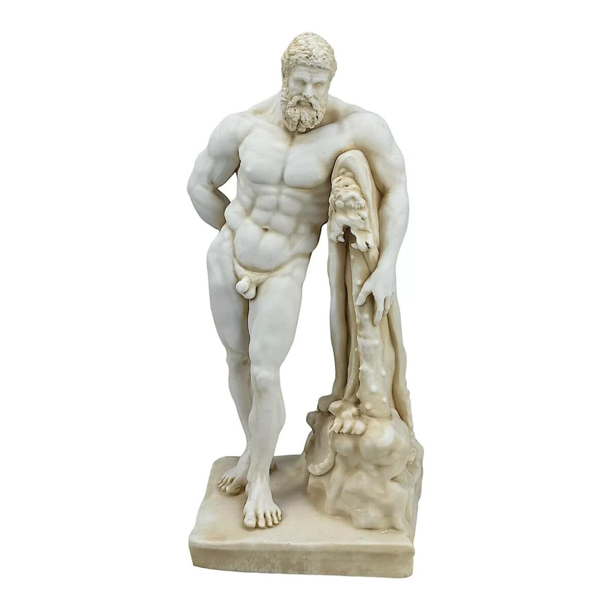 Nuestra estatua se basa en la famosa escultura, conocida como «El Hercules Farnese», que se exhibe en el Museo Archeologico Nazionale de Napoles.