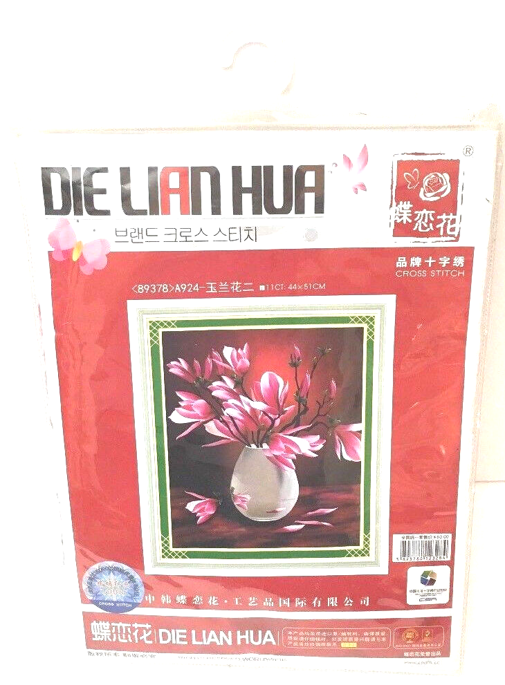 Cross Stitch Kit Pink Magnolia Flowers in Vase 89278 Die Lian Hua