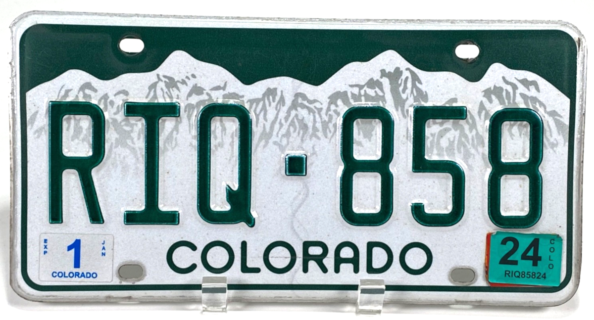 Colorado License Plate RIQ-858 – White Mountain Design - Stickers