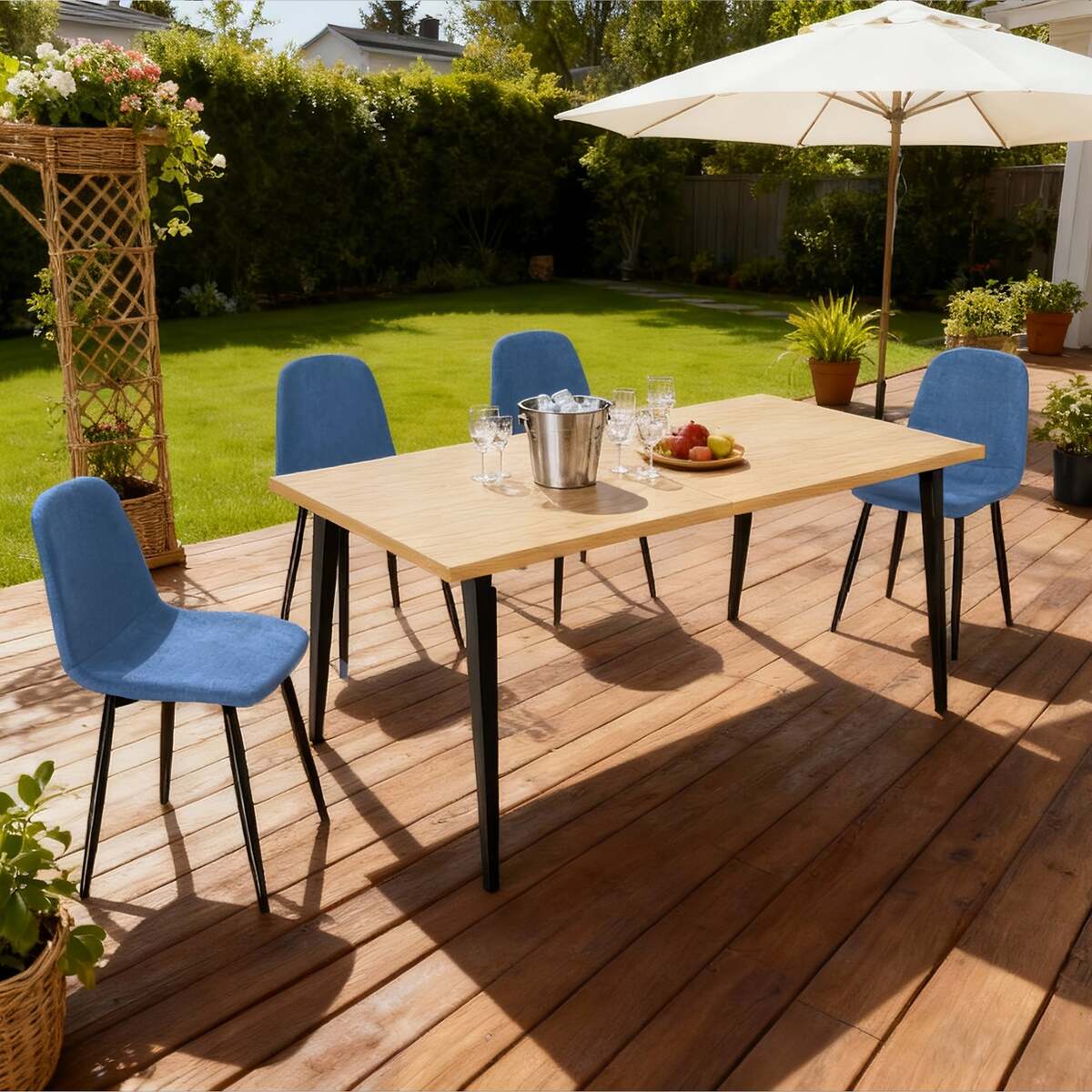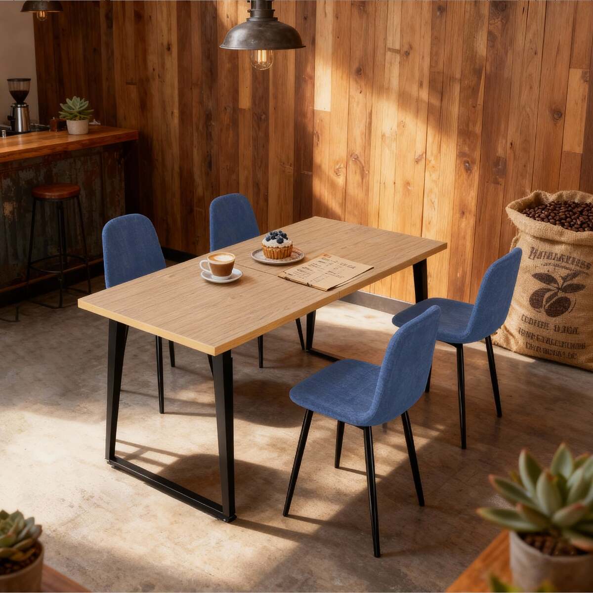 63" Farmhouse Industrial Dining Table Set, 4 Blue Chairs, Patio/Kitchen