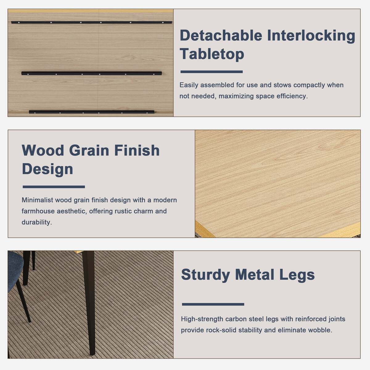 Hassle-Free Assembly Maintenance: Interlocking panel system installs in just half an hour.The smooth tabletop wipes clean easily with a damp cloth, making it ideal for busy households and everyday dining, while the iron legs require minimal upkeep.