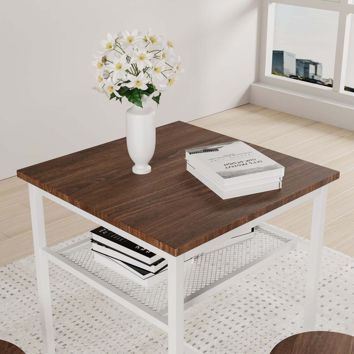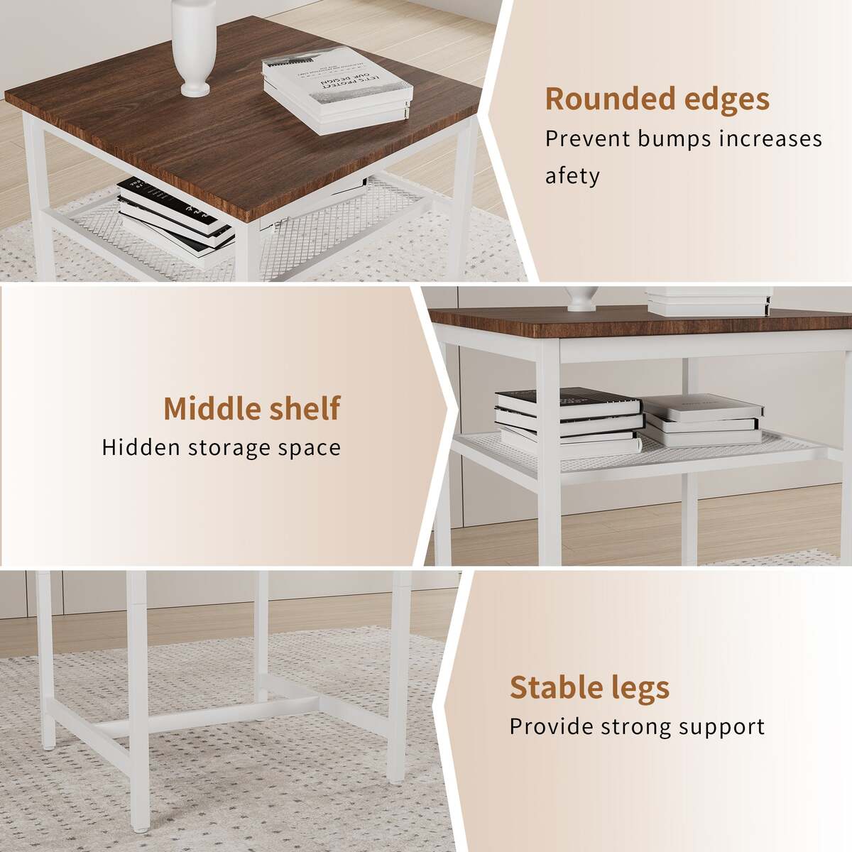 [Solid structure]: Our three-piece tableware is made of high-strength MDF surface and durable iron frame, ensuring stability and durability. The stool foot cover can prevent slipping and shaking, and protect the floor from scratching.