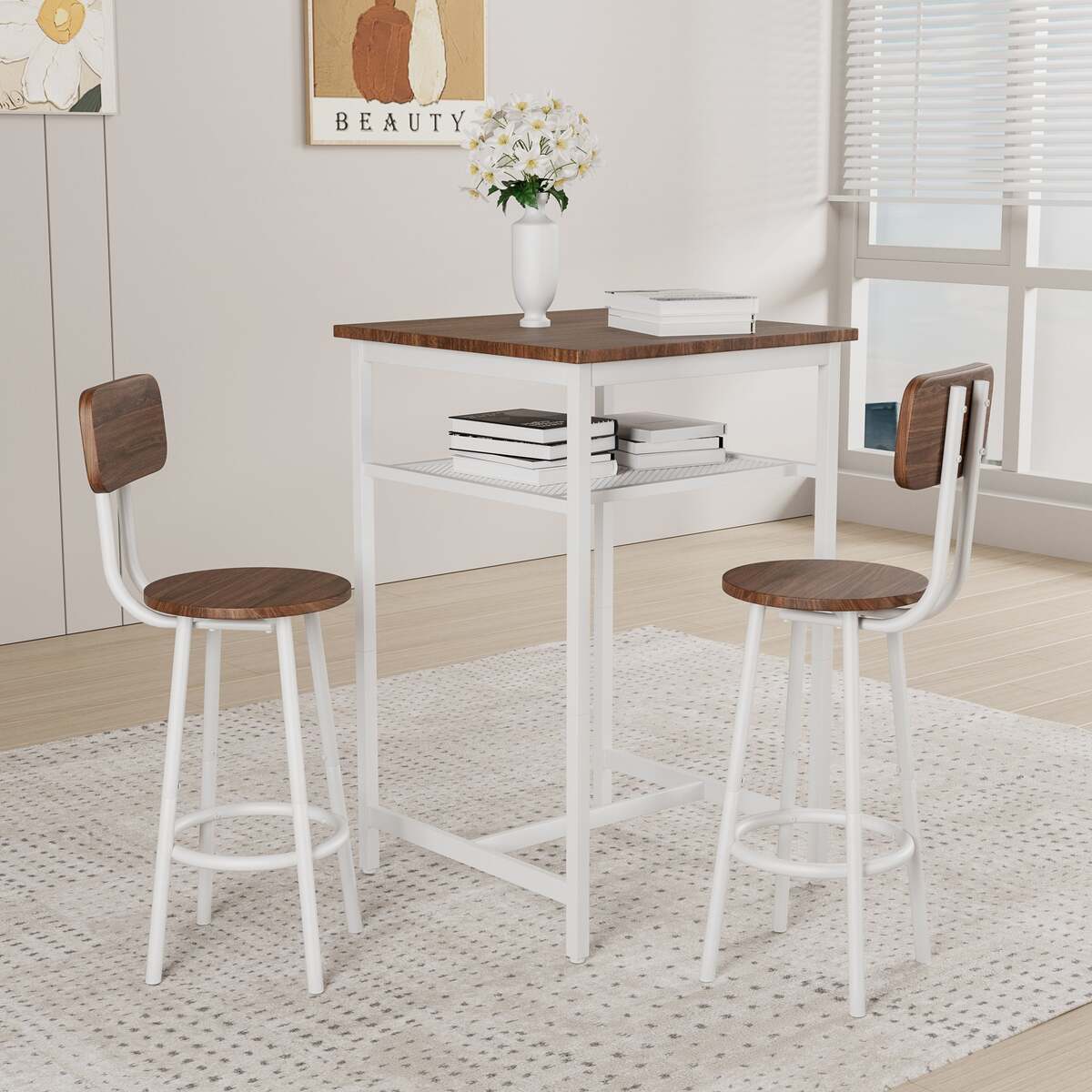 Bar Table Set: 2 Stools with Backrest & Partition - Perfect for Small Spaces