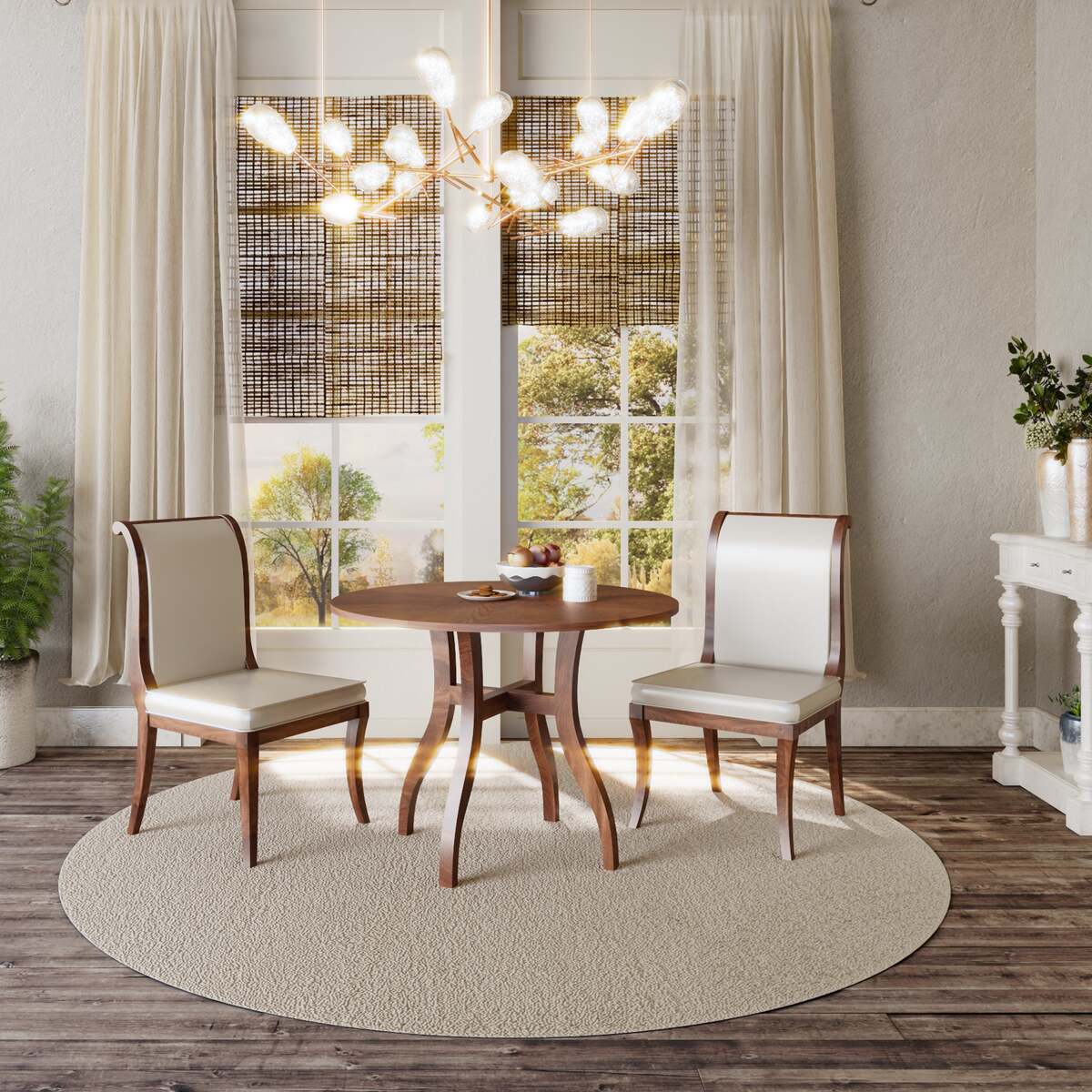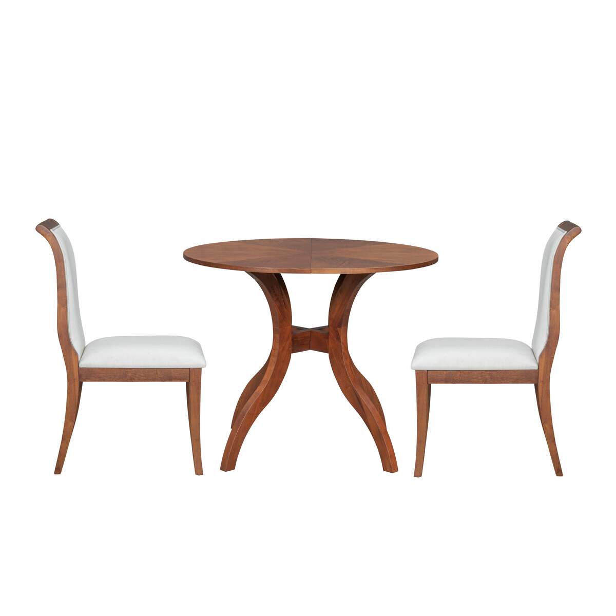 Walnut Round Dining Table Set: 2 Chairs, Solid Wood, Traditional