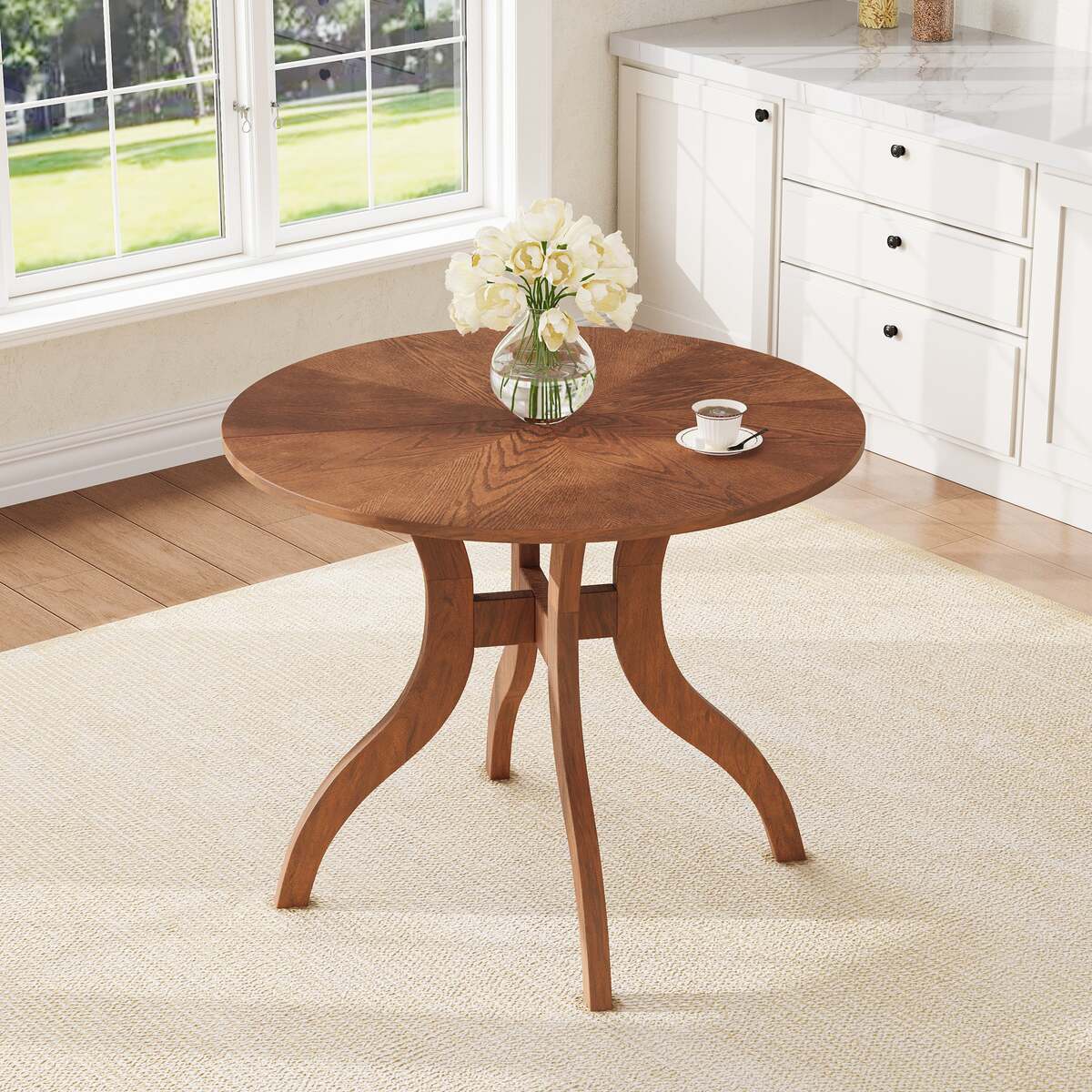 Handcrafted Walnut Finish Inlaid Tabletop:Genuine American walnut veneer with artisan inlaid wood patterns, showcasing natural grain variations. The rich, warm hue complements traditional home decors like farmhouse or classic interiors.