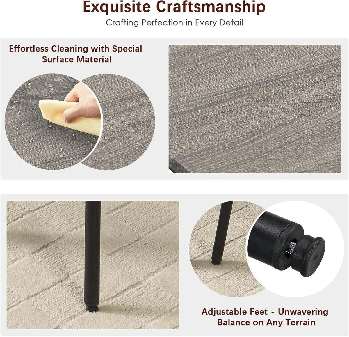 [Easy Assembly] ----- Easy 20-minute assembly. Instructions, accessories, and tools included. This kitchen dining table set easy to clean with damp cloth or mild detergent.