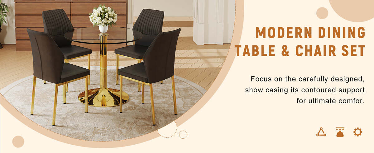 Place of Origin #originPlace# Main Color Black+Gold Main Material Glass+Metal,PU Leather Seating Capacity Seats 4 Dangerous Goods #dangerFlag#
