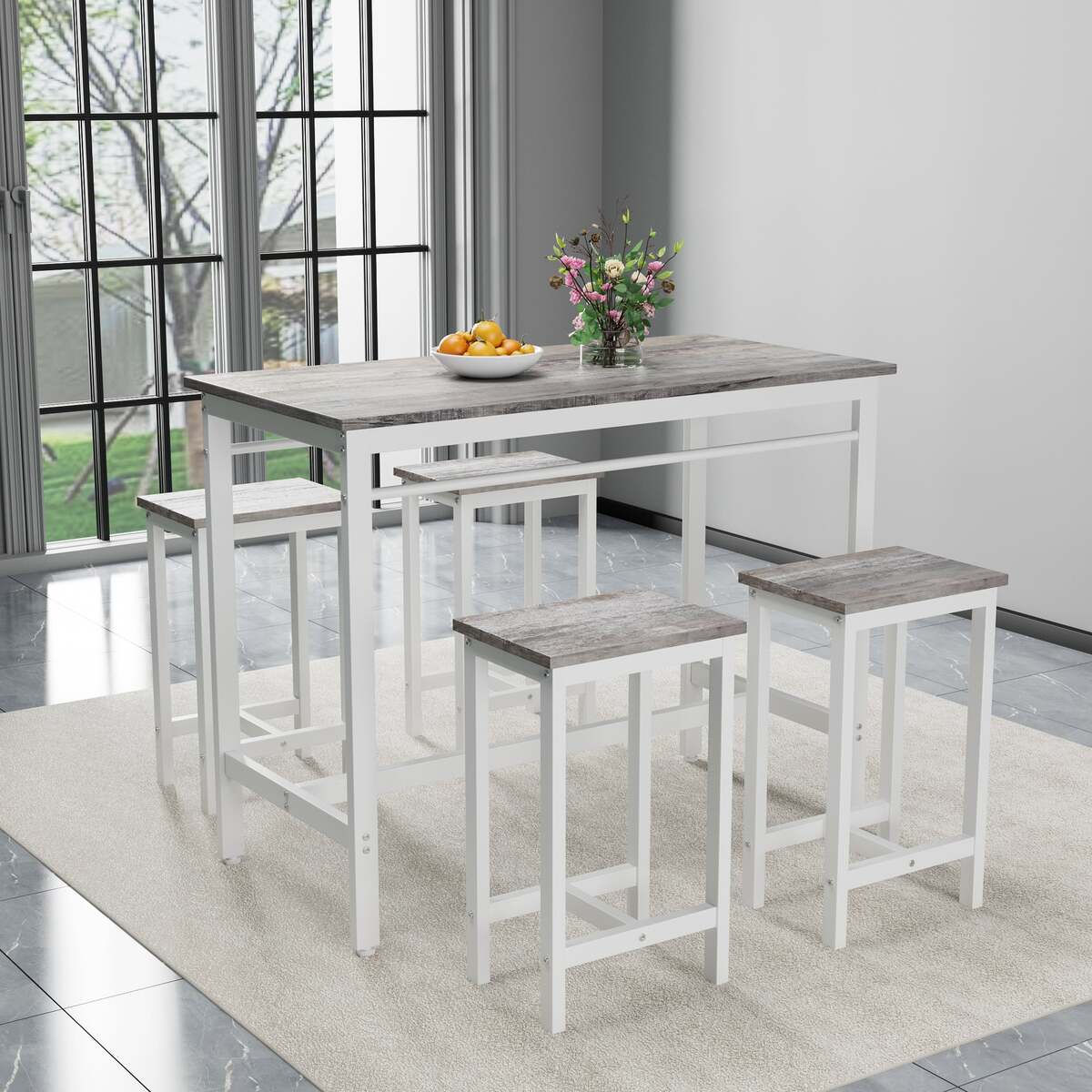 Five piece set design - this set of tables includes a table and four bar chairs. There is enough space under the table to put your legs. When not in use, the bar chairs can be neatly placed under the table, which is very space saving.