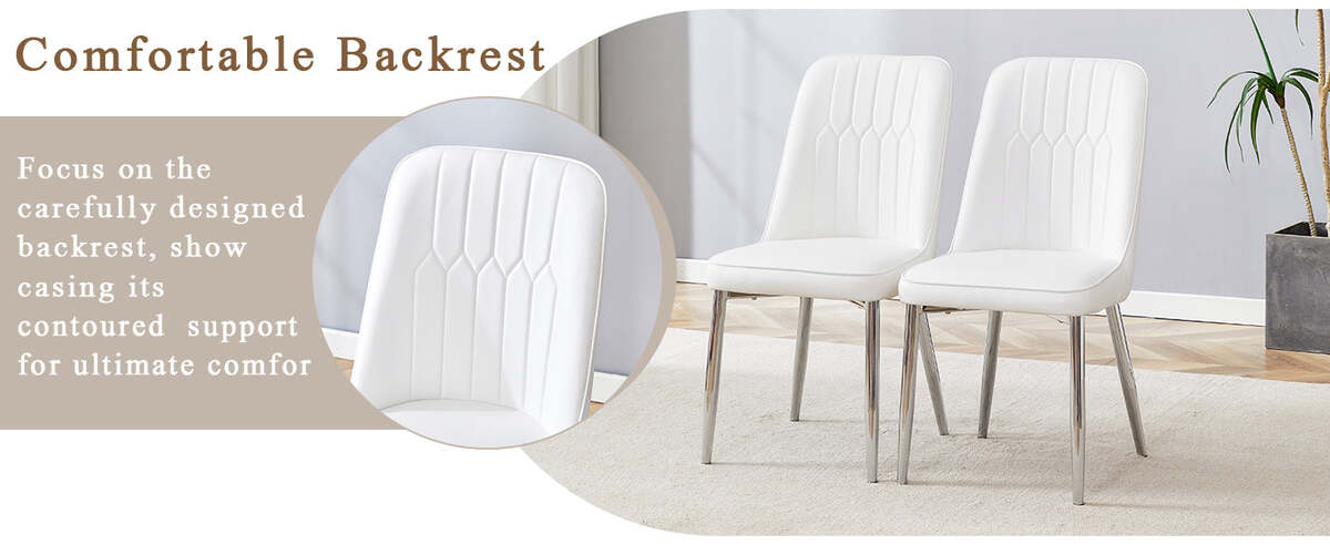 Silver Metal Chair Legs: The silver metal legs not only add a sense of design but also provide strong support, ensuring the stability and durability of the chair.Anti-slip Floor Feet: Considering the safety and stability of use, the bottom of the chair legs is specially equipped with anti-slip floor feet, protecting the floor and ensuring the stability of the dining chairs during use.