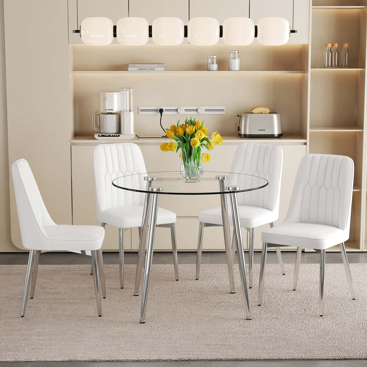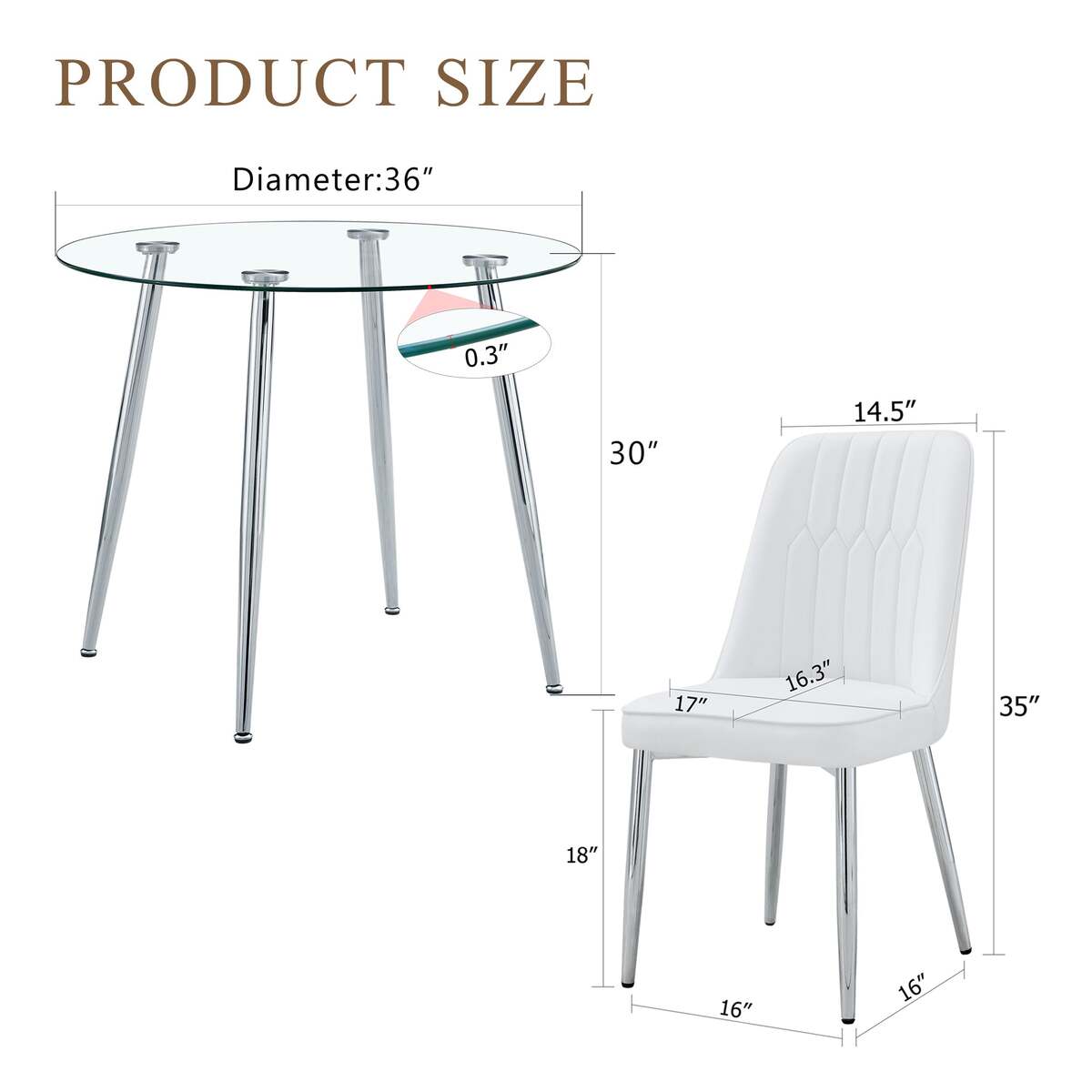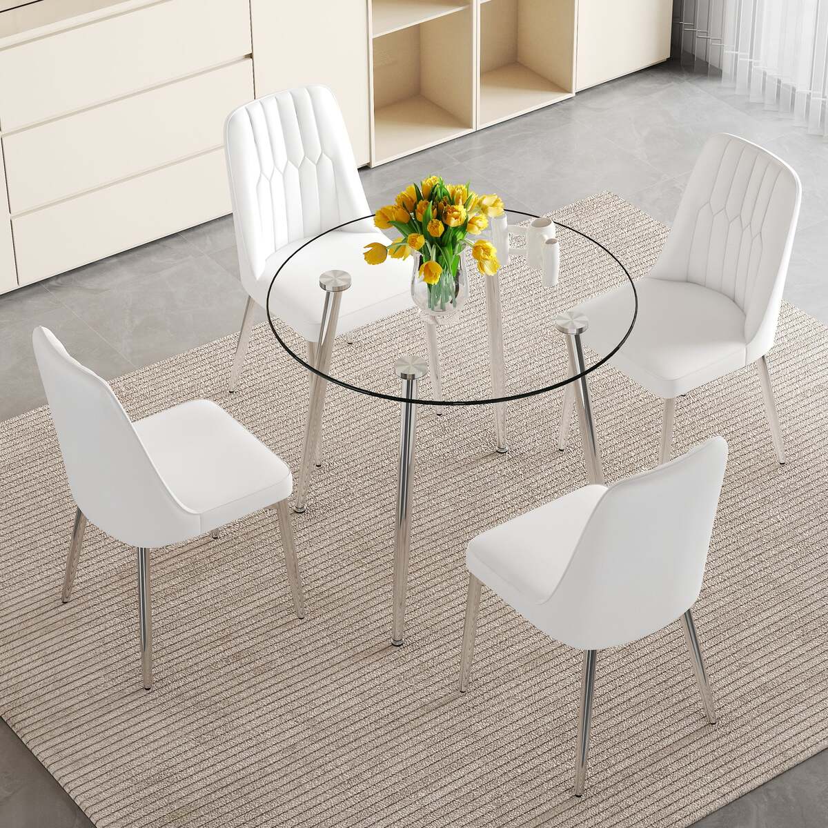 Modern Luxury 36" Glass Dining Table & 4 White Chairs Set