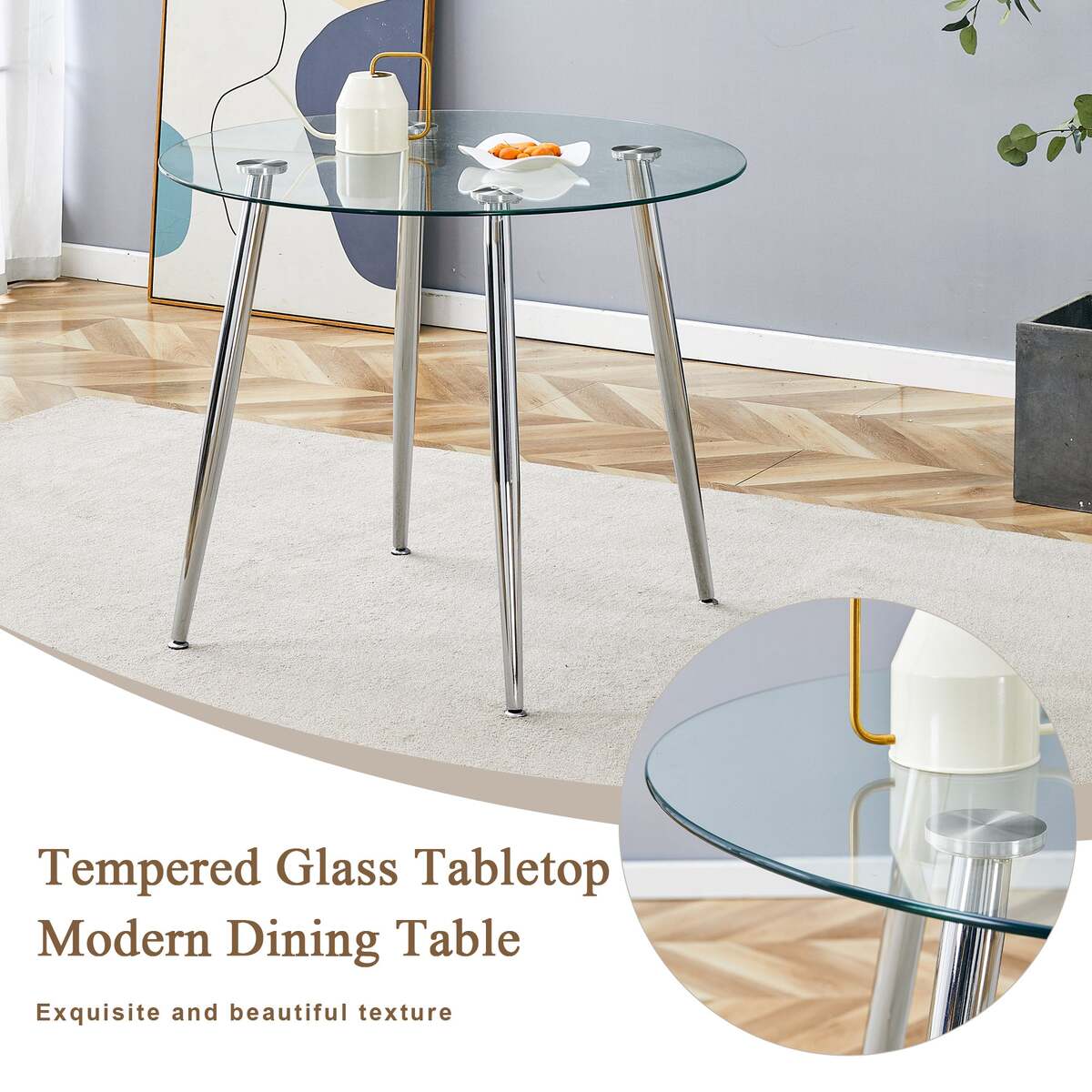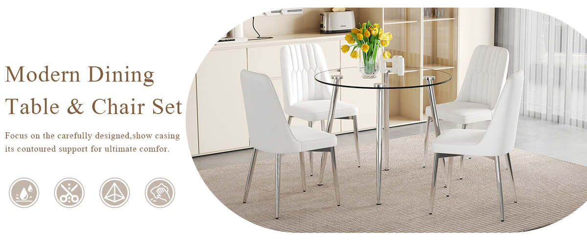 Modern Minimalist Design: This dining table and chair set is presented in a modern minimalist style, suitable for various home environments, adding a touch of fashion.Clear Glass Top: The table features a clear glass top, which is not only aesthetically pleasing but also easy to clean, maintaining the table's clarity.