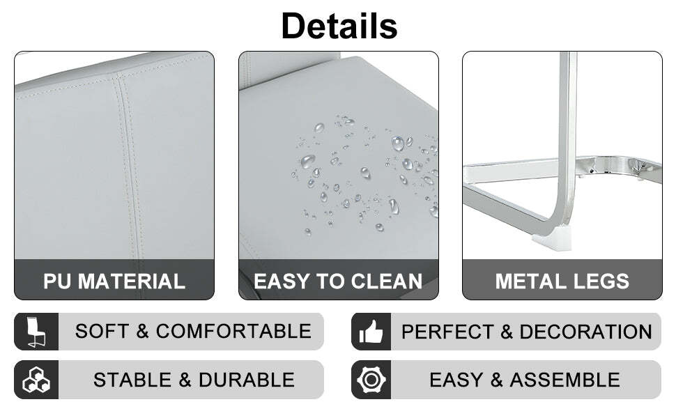 Stable Arched Metal Legs: The silver arched metal legs not only add a sense of design but also provide strong support, ensuring the stability and durability of the chair.Keeping the secure of the seat during use.Anti-Slip Protective Feet: The anti-slip feet design at the bottom of the chair legs protects the floor from scratches and increases the safety of the chair during use.