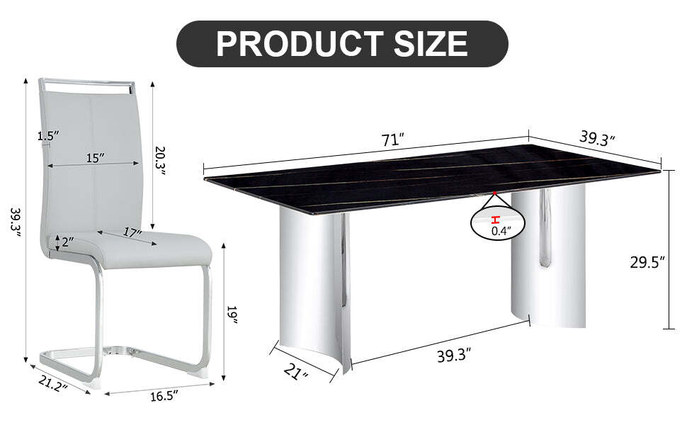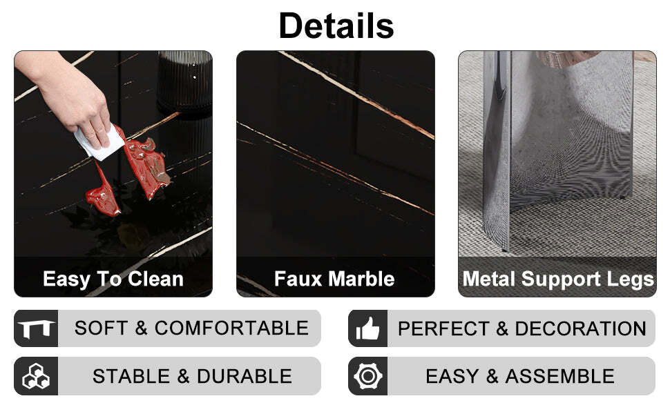 Black Marble Pattern: The tabletop is made of tempered glass with a black marble pattern sticker, adding a touch of modern luxury to your dining area.Tempered Glass Top: Offers high transparency and durability, easy to clean, suitable for everyday use and special occasions.