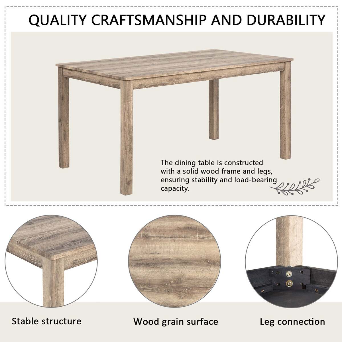 Rustic country style: The design of this dining table set is simple and vintage with a rustic aesthetic. The finish mimics a natural wood grain and scratched effect, giving it a warm and rustic feel. This versatile dining table set can be incorporated into any style of home decor and its unique rustic features will enhance your home