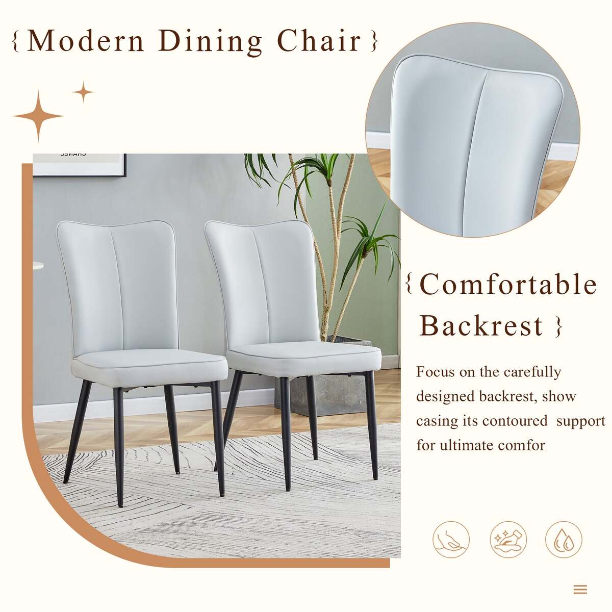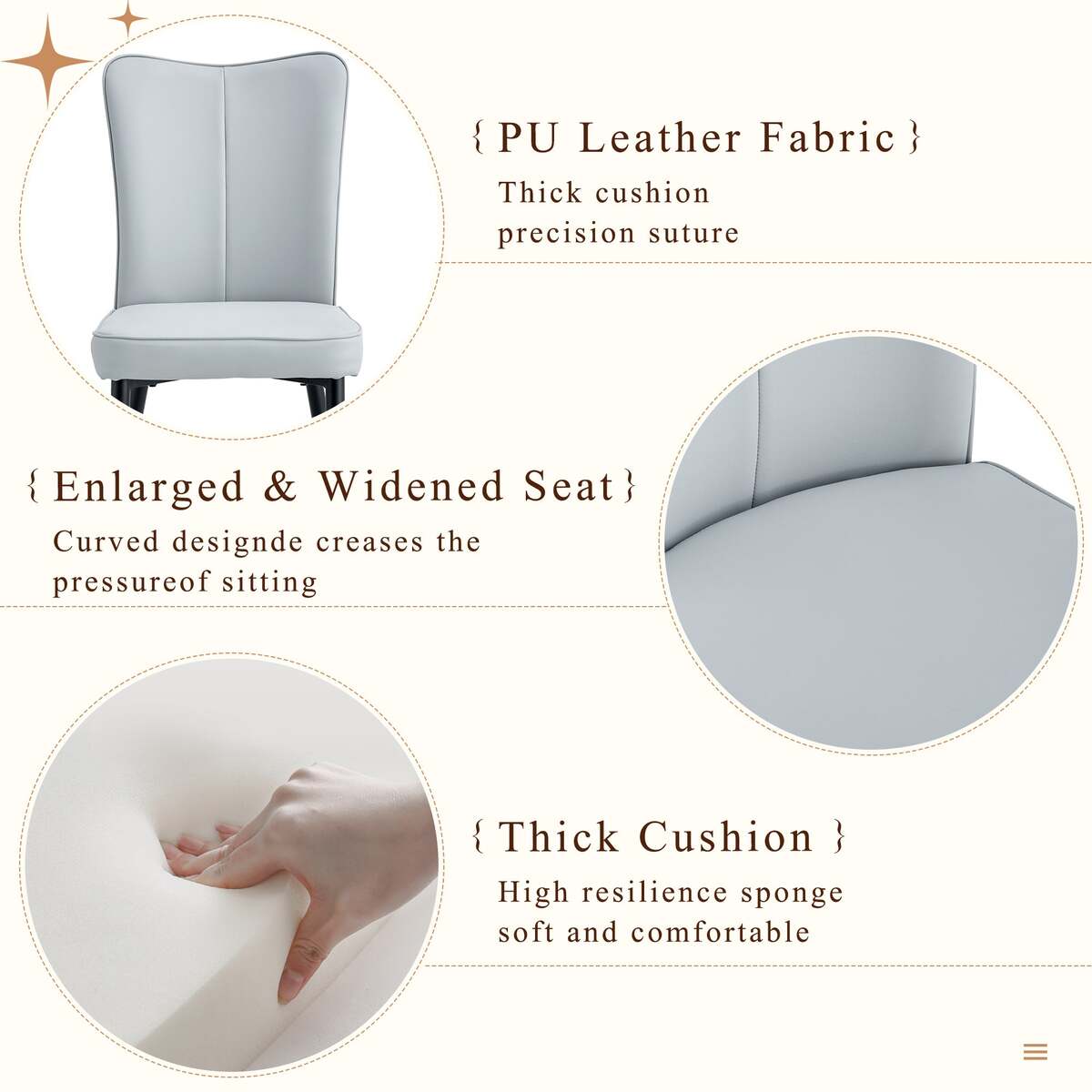 PU Material for Comfort: The light gray chairs are made of PU material, with a vertical line design on the backrest that adds aesthetic detail while offering a soft and comfortable seating experience.